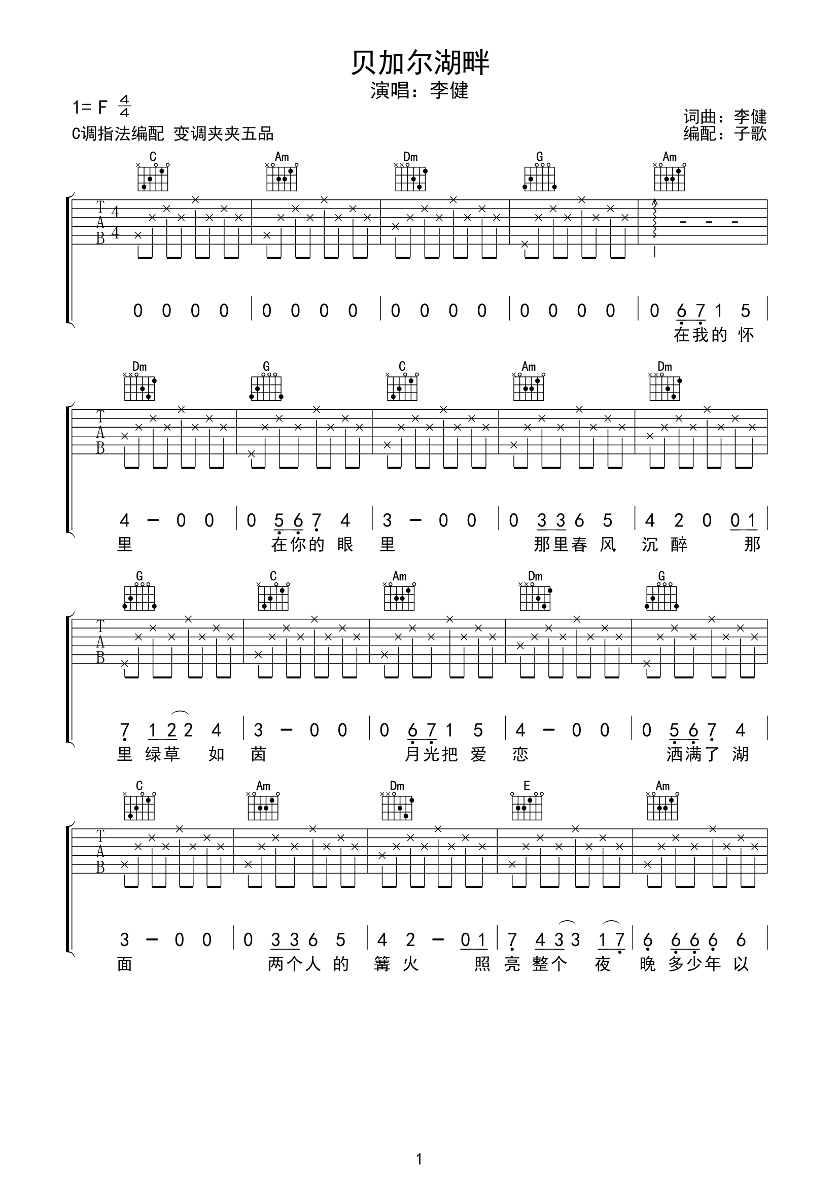 贝加尔湖畔吉他谱 - 李健 - G调吉他弹唱谱