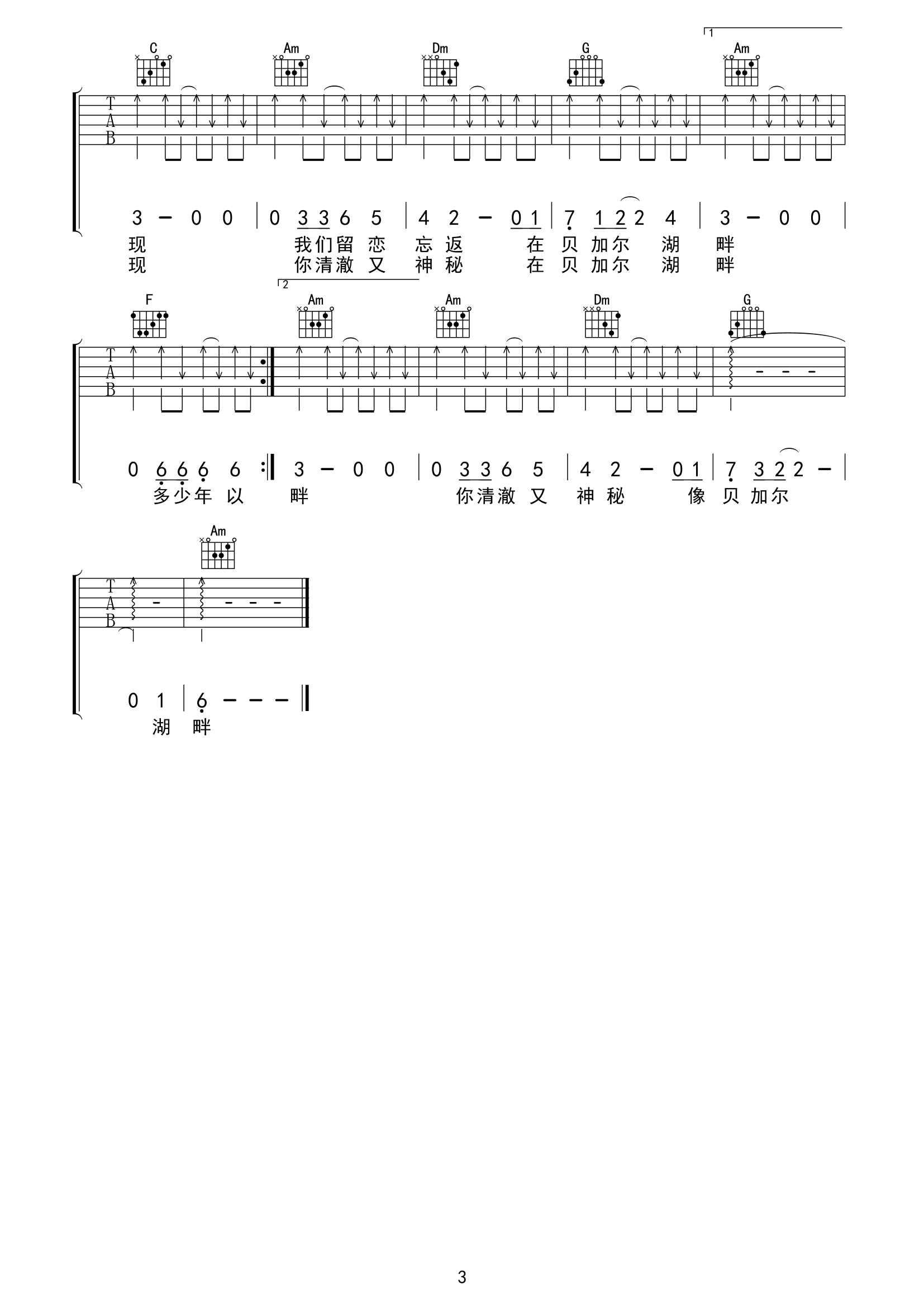 当前位置:琴谱网>吉他弹唱>贝加尔湖畔