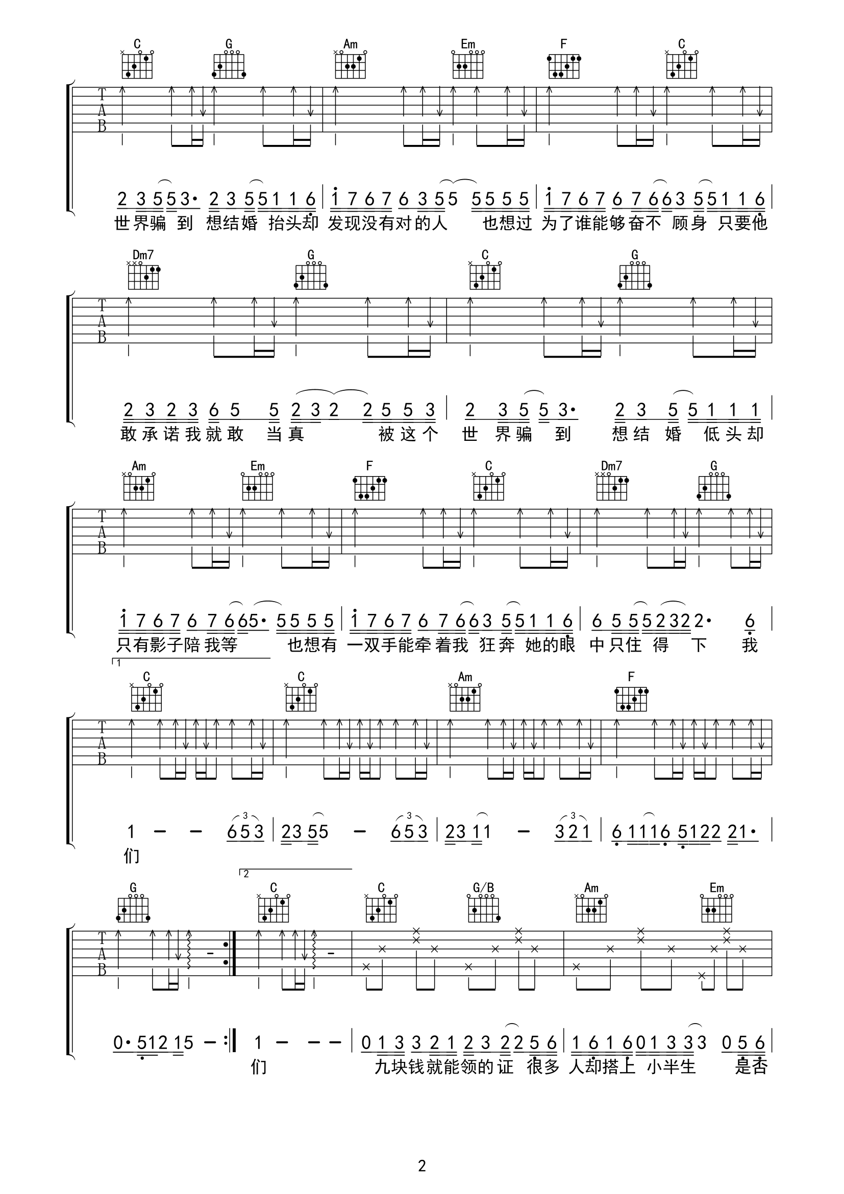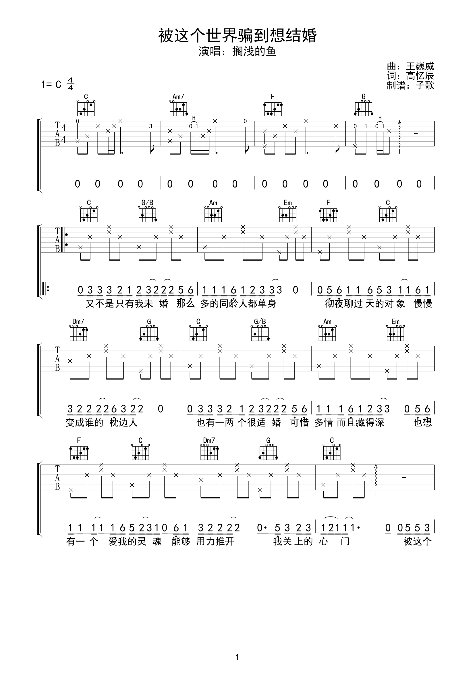 被这个世界骗到想结婚吉他谱 - 搁浅的鱼 - C调吉他弹唱谱