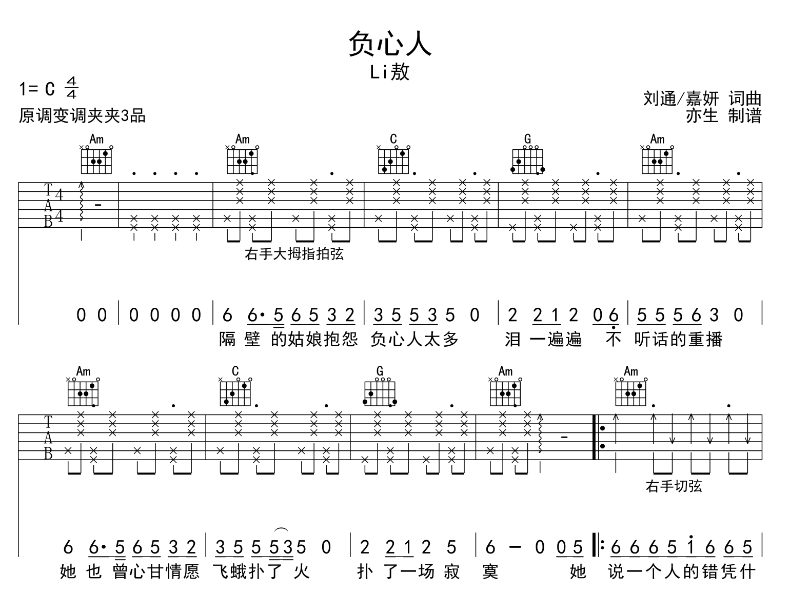 负心人吉他谱 - LI敖 - C调吉他弹唱谱 - 原版