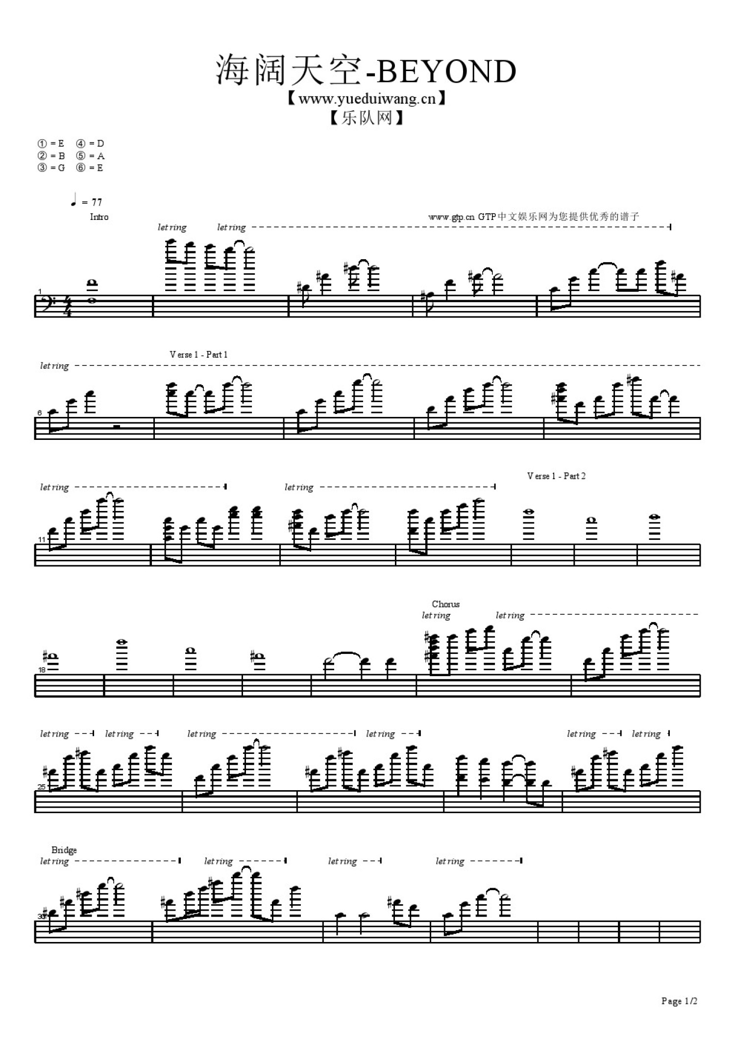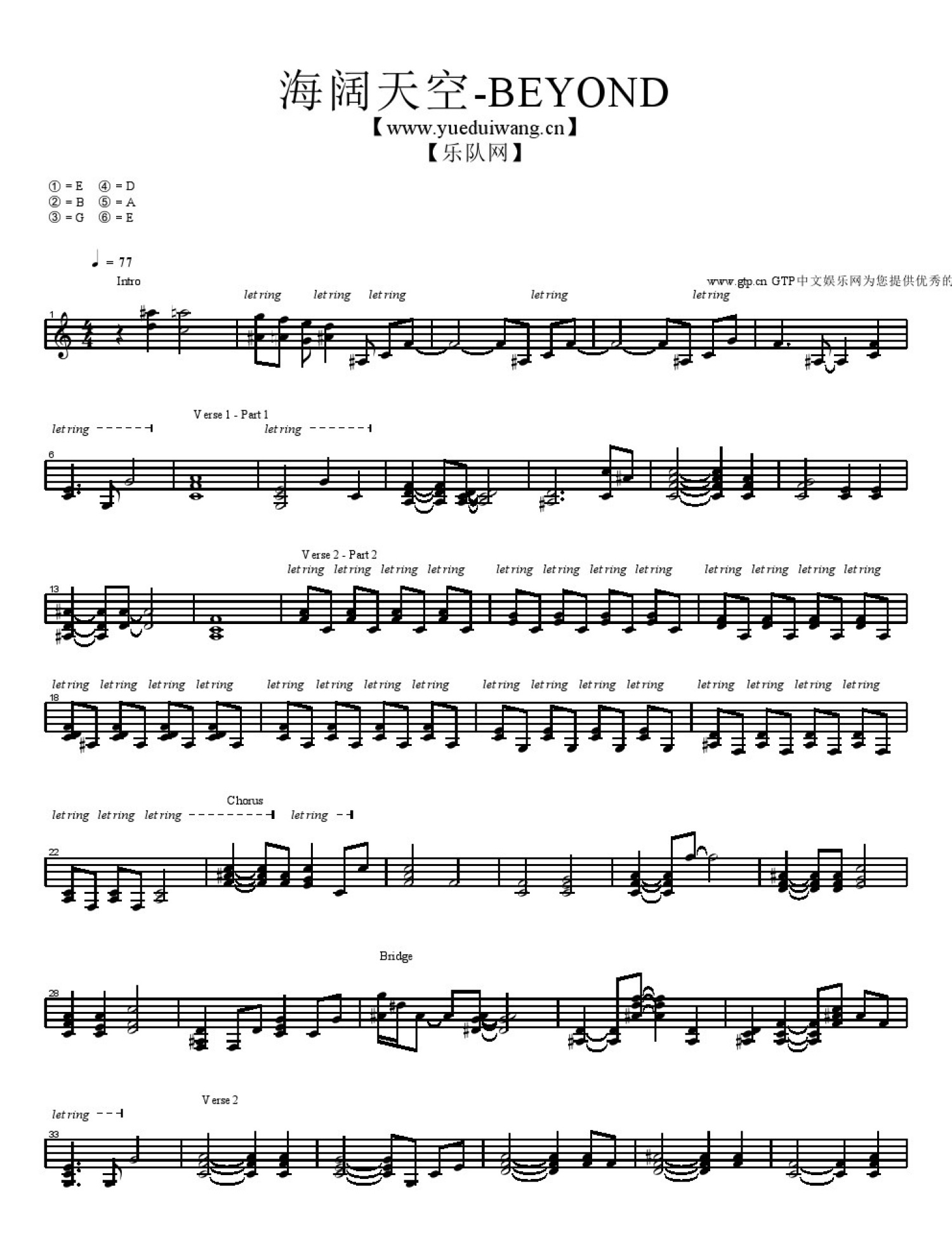 曲谱介绍: BEYOND《海阔天空》钢琴谱_键盘谱