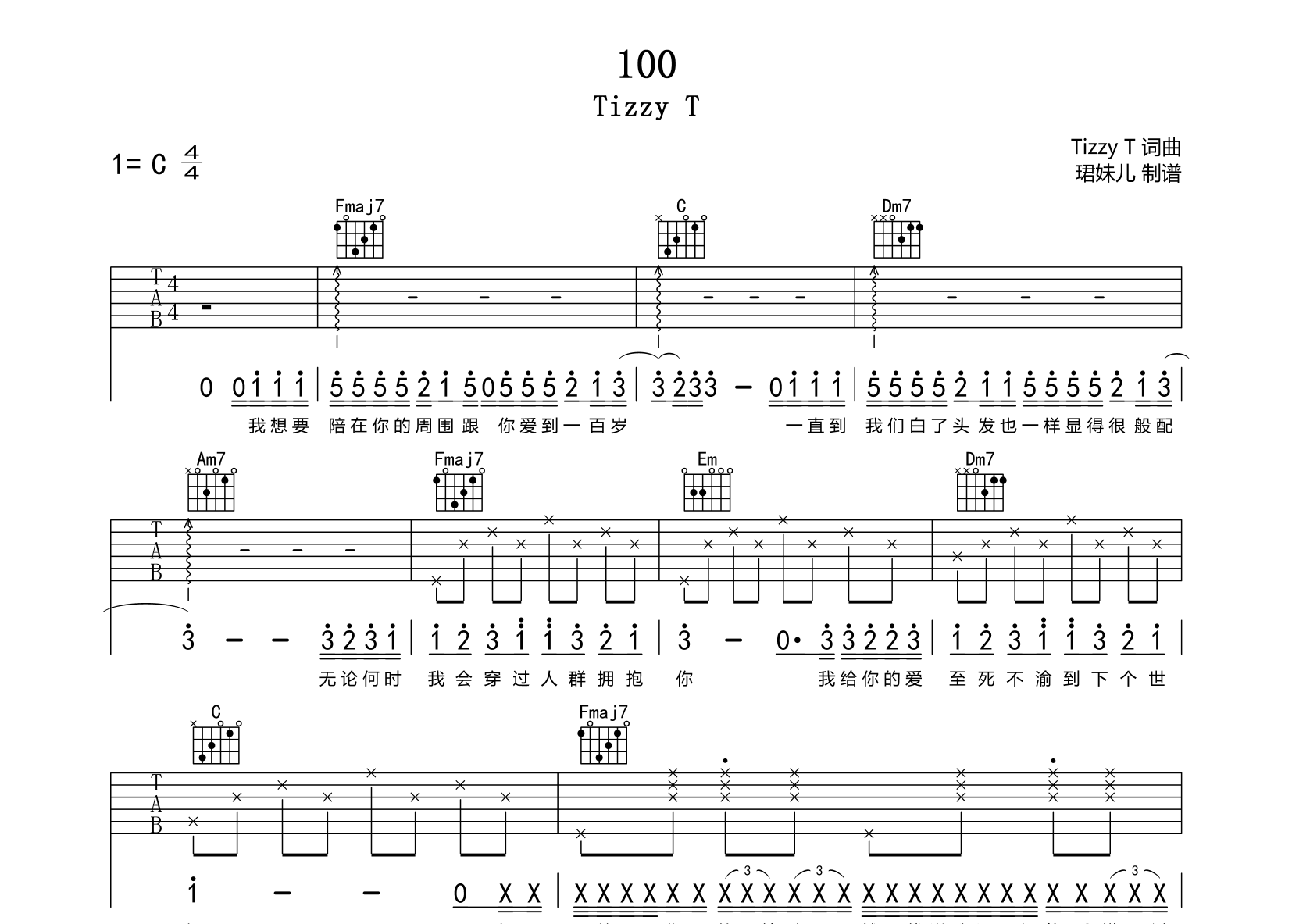 100吉他谱 - Tizzy - C调吉他弹唱谱