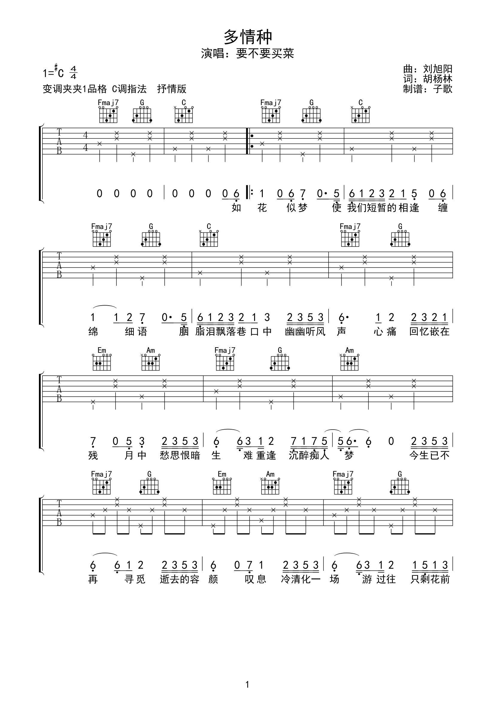 多情种吉他谱 - 要不要买菜 - C调吉他弹唱谱