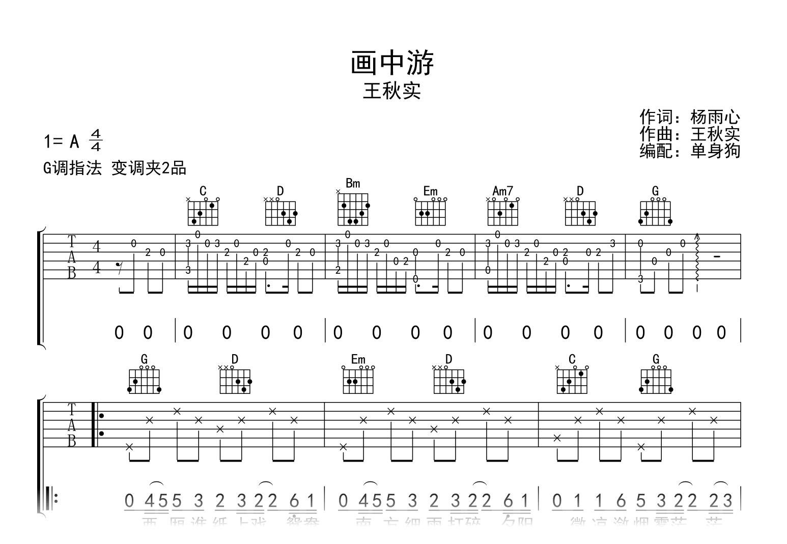 画中游吉他谱 - 王秋实 - G调吉他弹唱谱