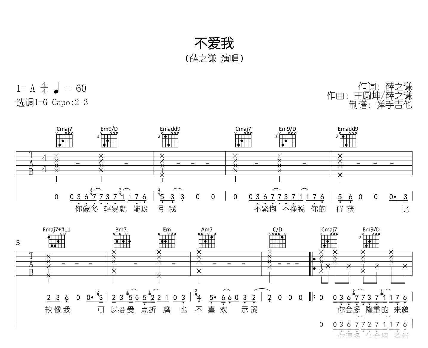 不爱我吉他谱 - 薛之谦 - G调吉他弹唱谱