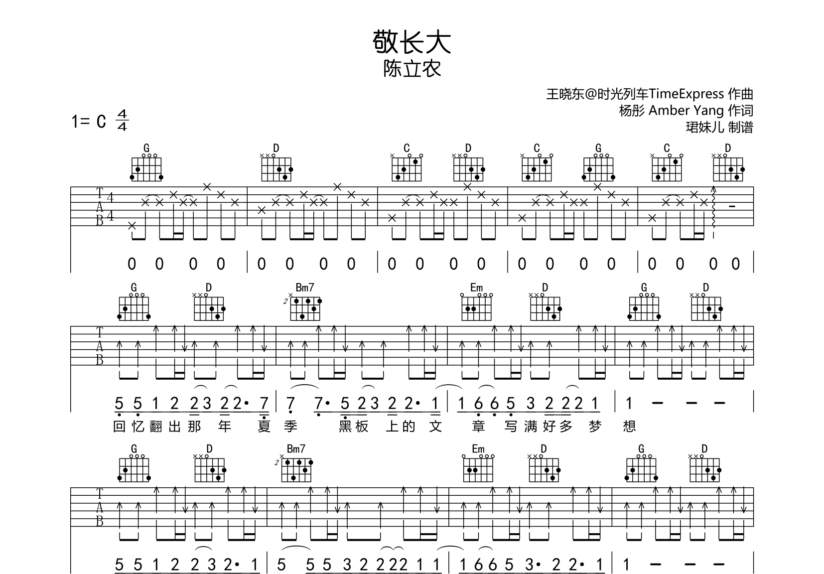 敬长大吉他谱 - 陈立农 - C调吉他弹唱谱 - 原版