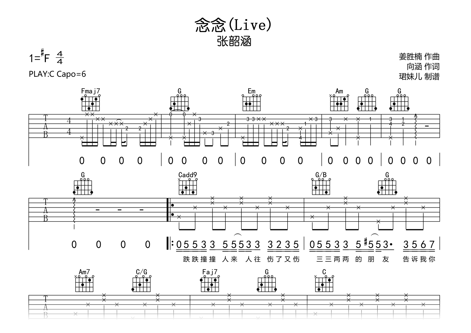 念念吉他谱 - 念念 - C调吉他弹唱谱