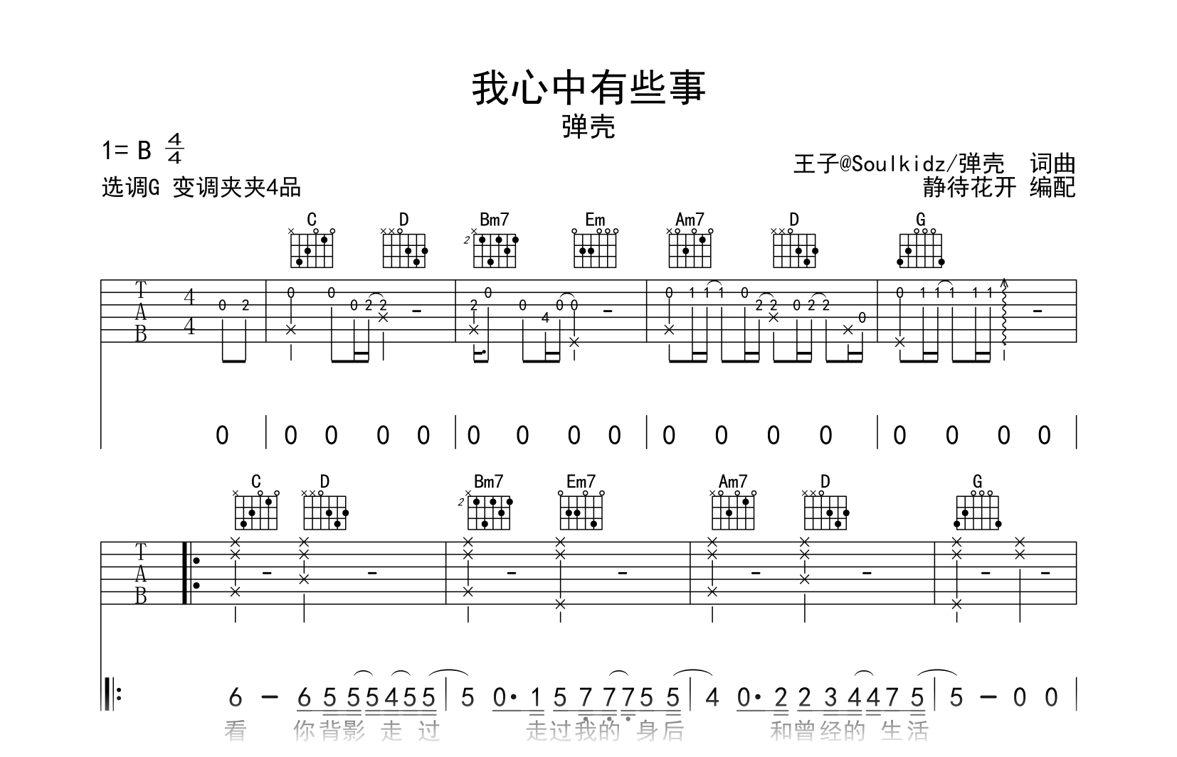 我心中有些事吉他谱 - 弹壳 - G调吉他弹唱谱