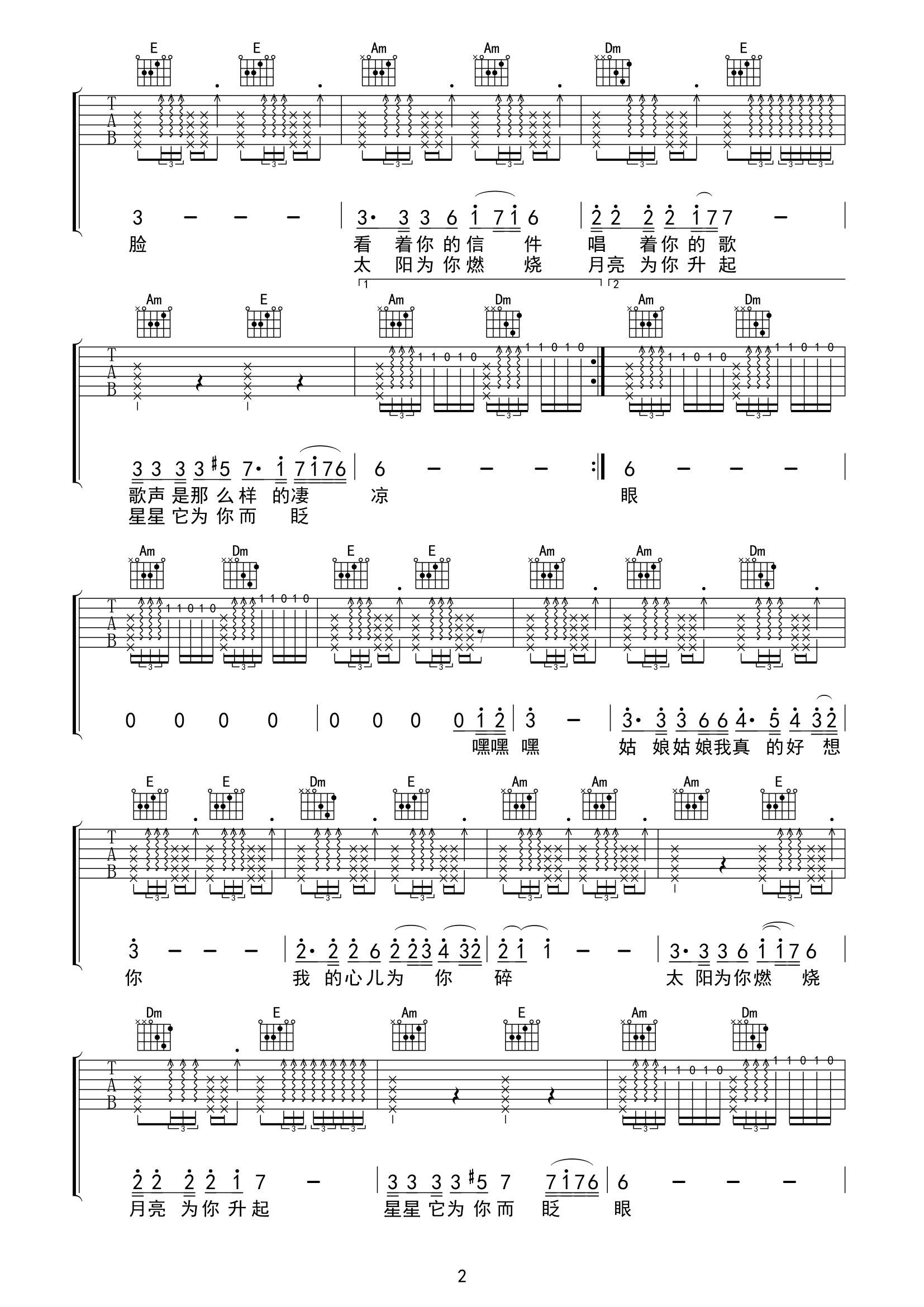 当前位置:琴谱网>吉他弹唱>姑娘