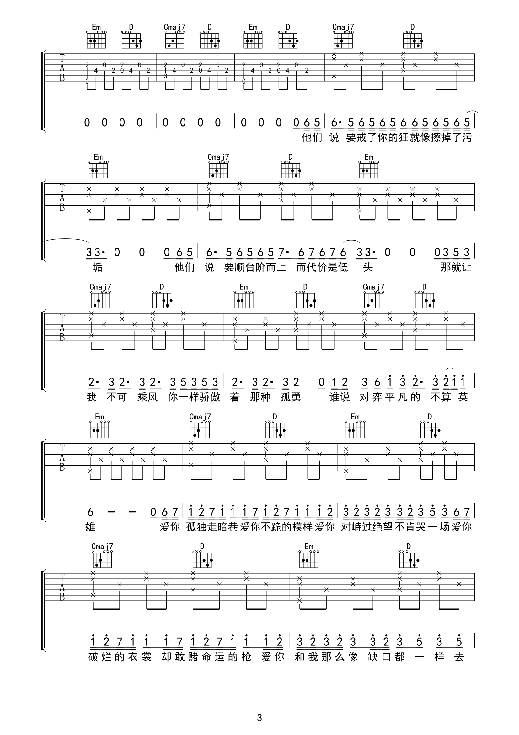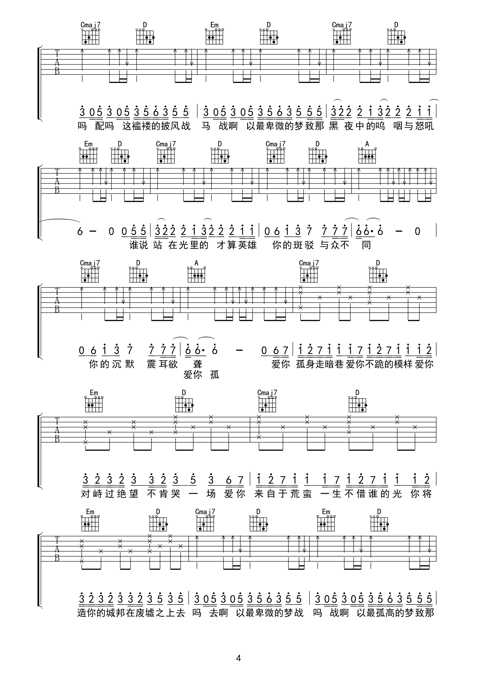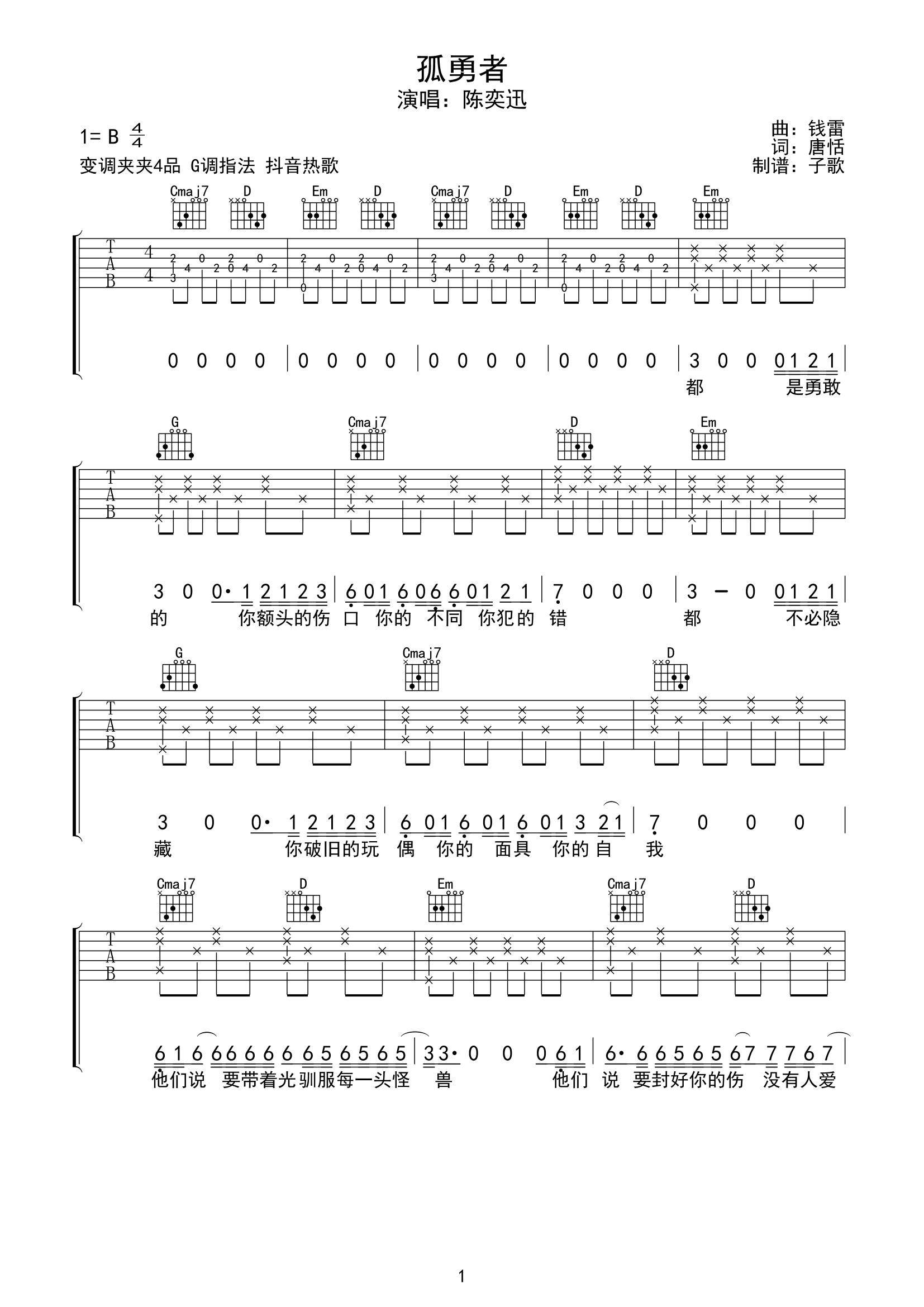 当前位置:琴谱网>吉他弹唱>孤勇者