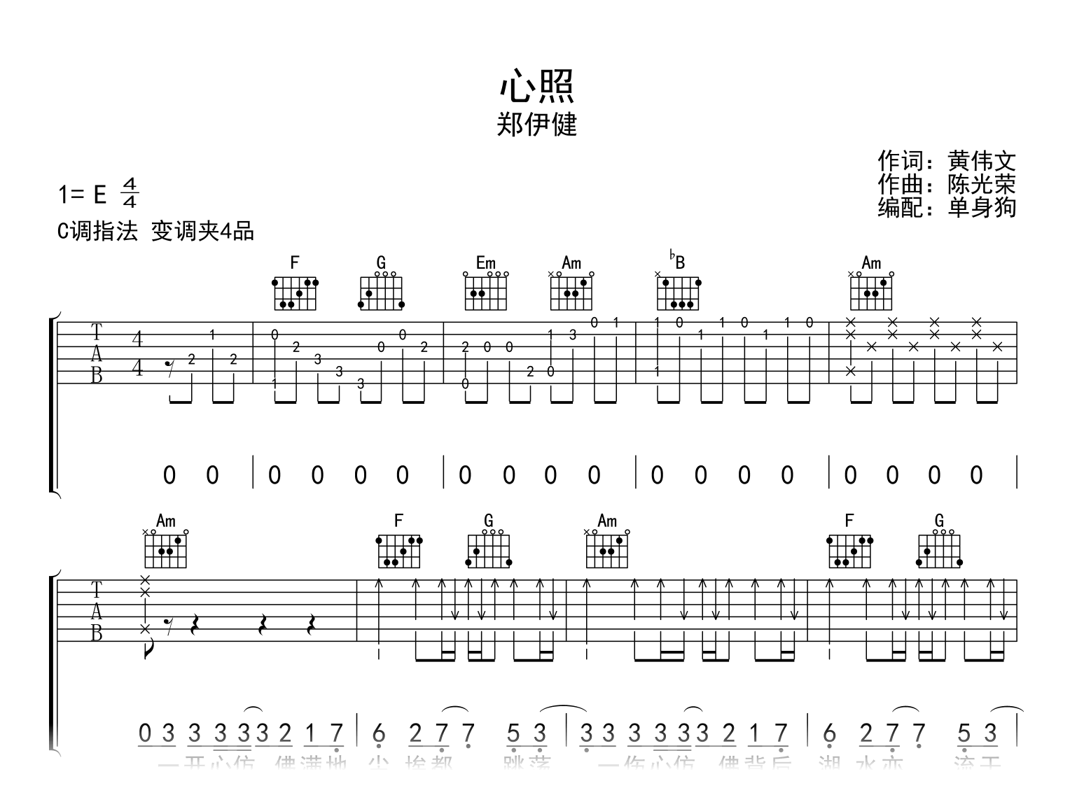 心照吉他谱 - 郑伊健 - C调吉他弹唱谱