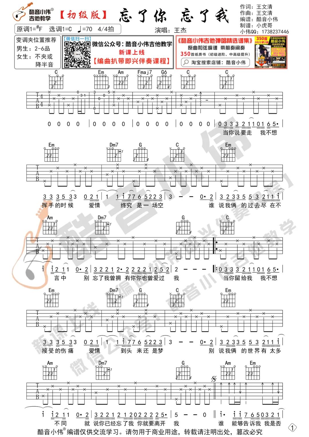 忘了你忘了我吉他谱 - 王杰 - C调吉他弹唱谱 - 原版