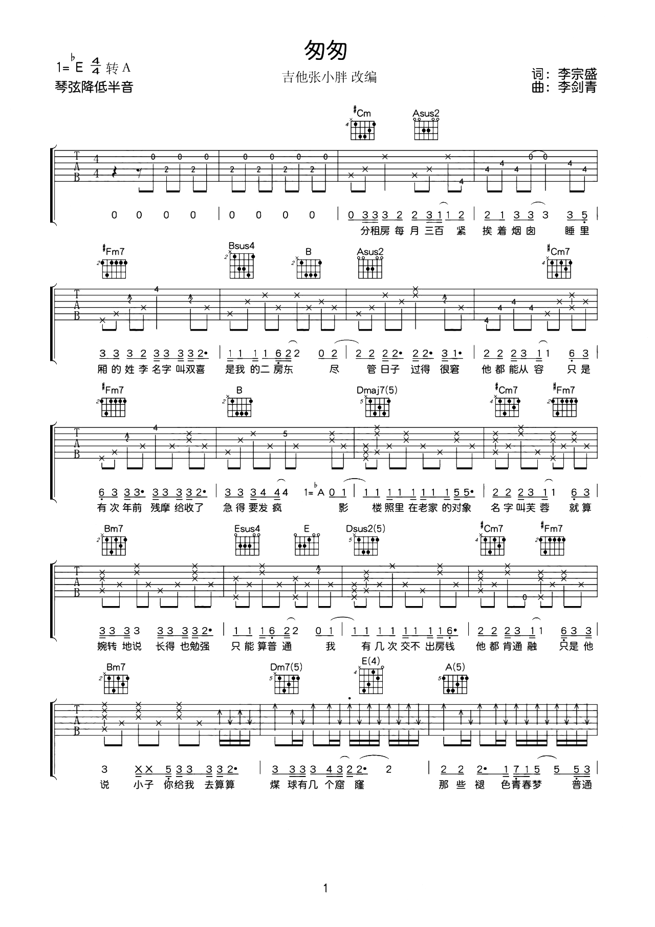 曲谱介绍: 匆匆吉他谱,李剑青/李宗盛演唱的歌曲 《匆匆》吉他弹唱谱,选用bE转A调,节奏4/4拍,弹唱时候无需使用变调夹,琴弦降半音调弦,本谱细节和变化较多,有些和弦对新手有难度推荐参考演示视频,然后多加练习。