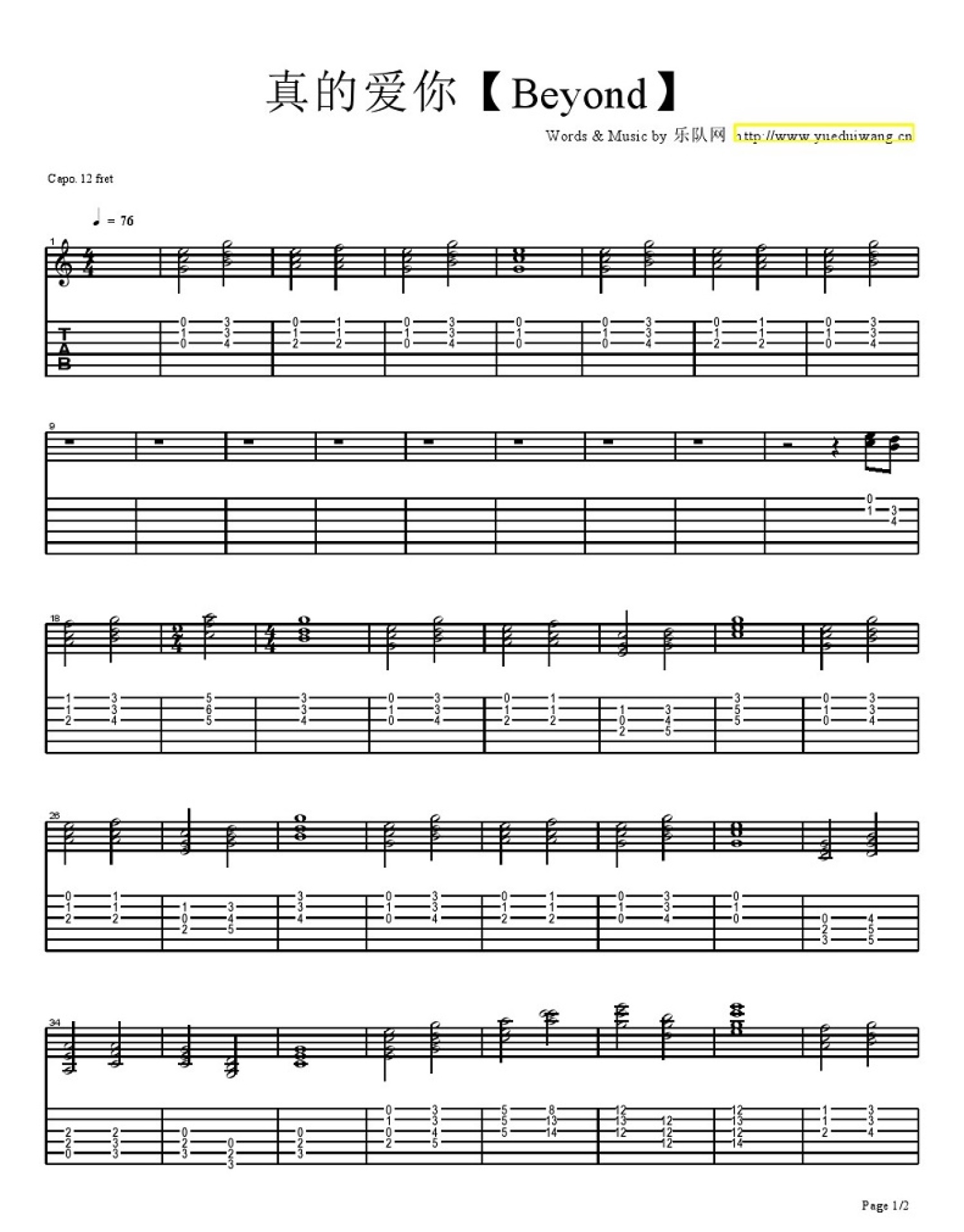 曲谱介绍: 真的爱你(键盘谱)BEYOND