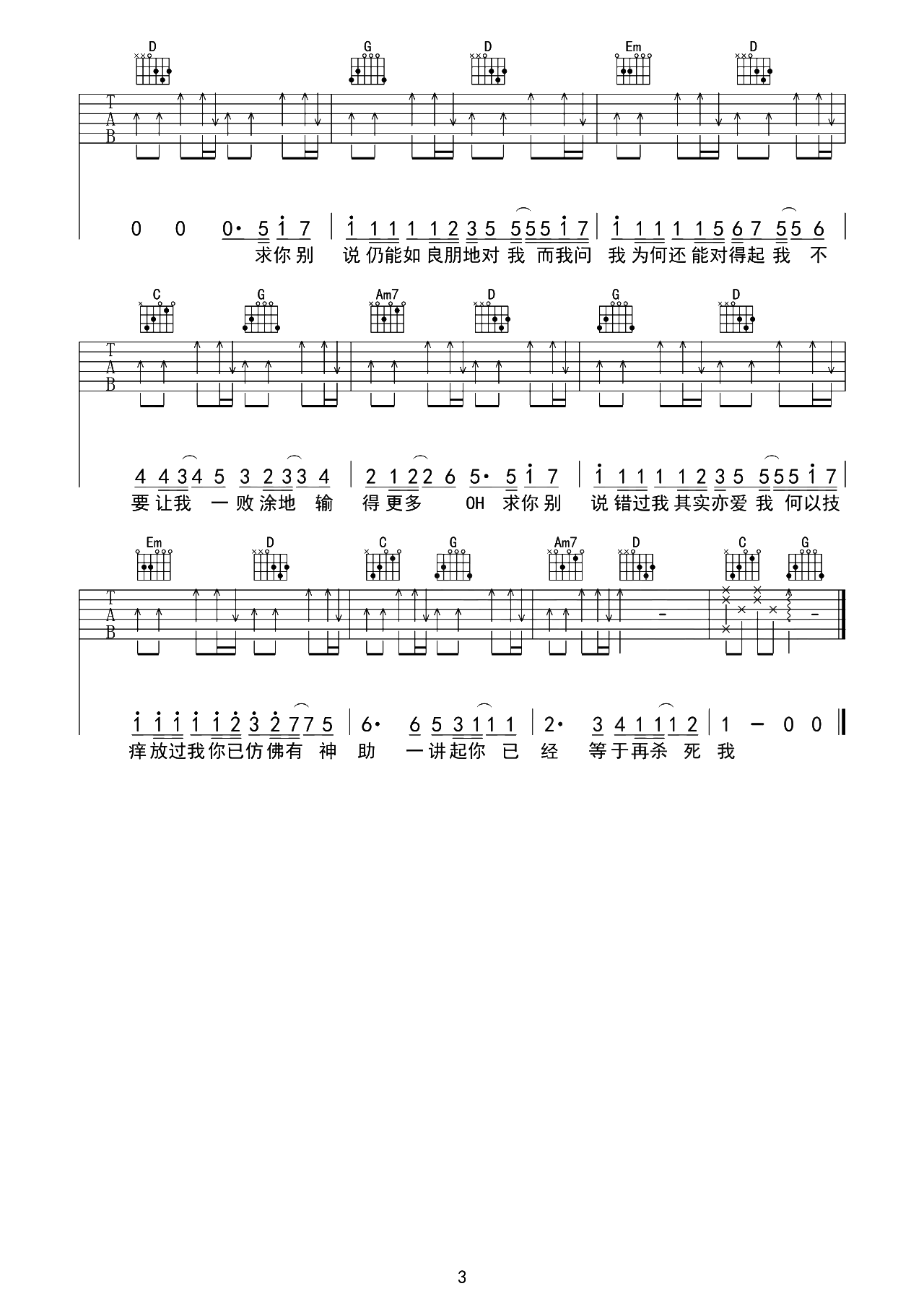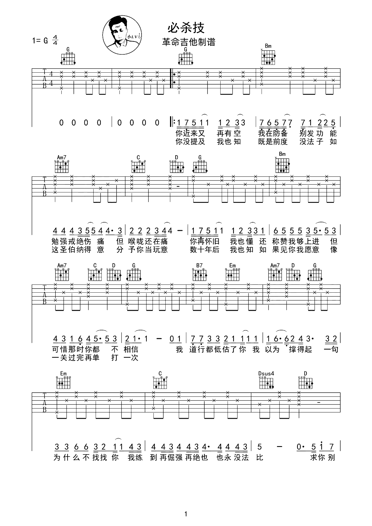 曲谱介绍: 必杀技吉他谱,古巨基演唱的粤语歌曲,最近被网络短视频又重新翻火的老歌,这首歌讲述情感中的博弈,以游戏的角度诠释着共鸣的情绪,不是谁弱就总被辜负,有可能看似强的一方也会输给“必杀技”。 《必杀技》吉他弹唱谱,选用G调指法,标准调音无需再使用变调夹,节奏4/4拍,难度3级较简单,琴友们可参考本谱的弹唱演示教学视频。