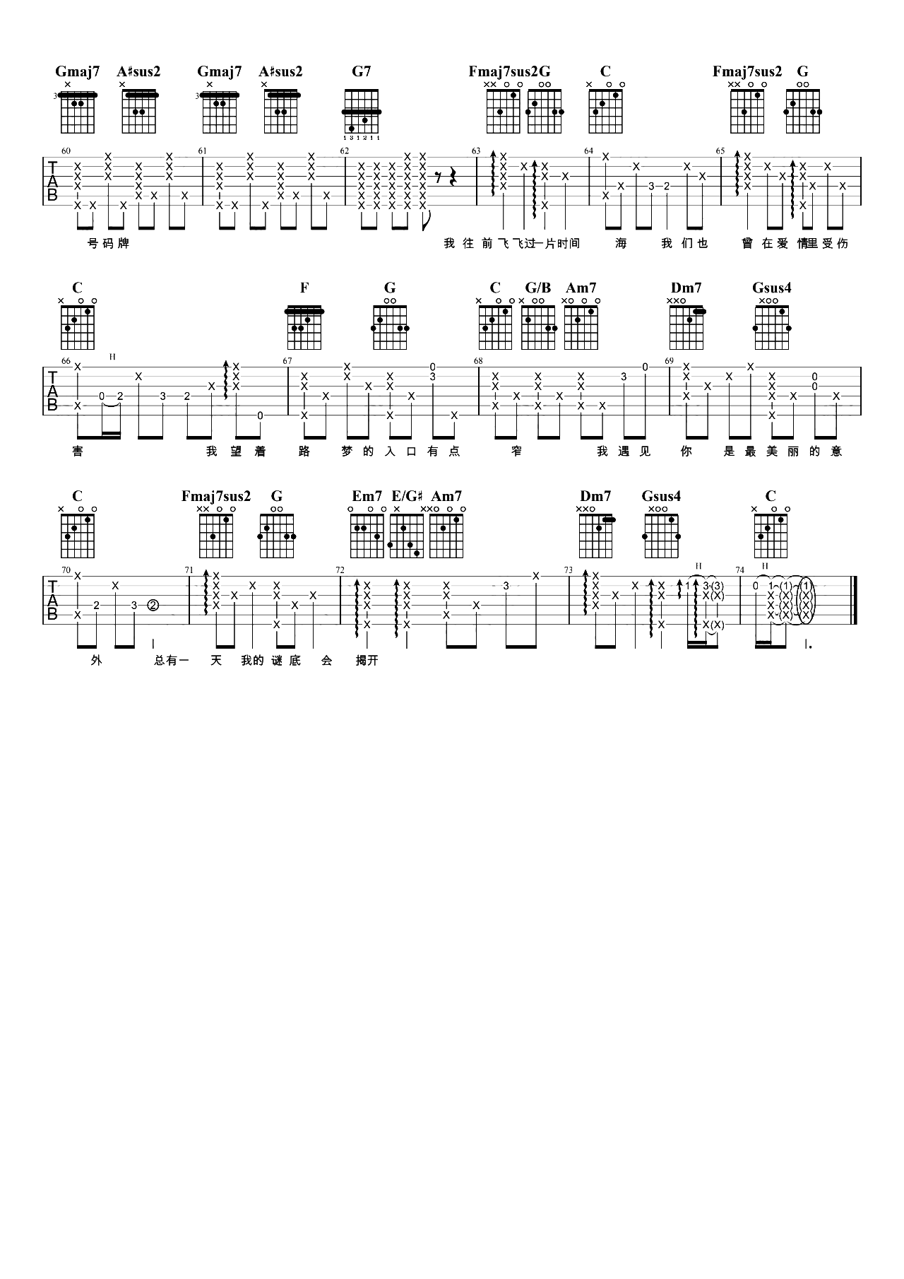 当前位置:琴谱网>吉他弹唱>遇见