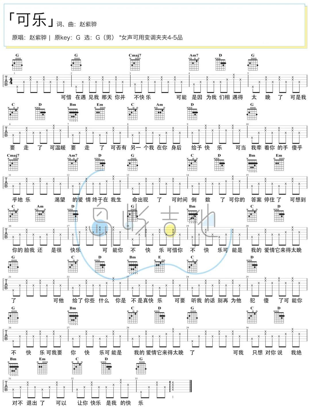 可乐吉他谱 - 赵紫骅 - G调吉他弹唱谱