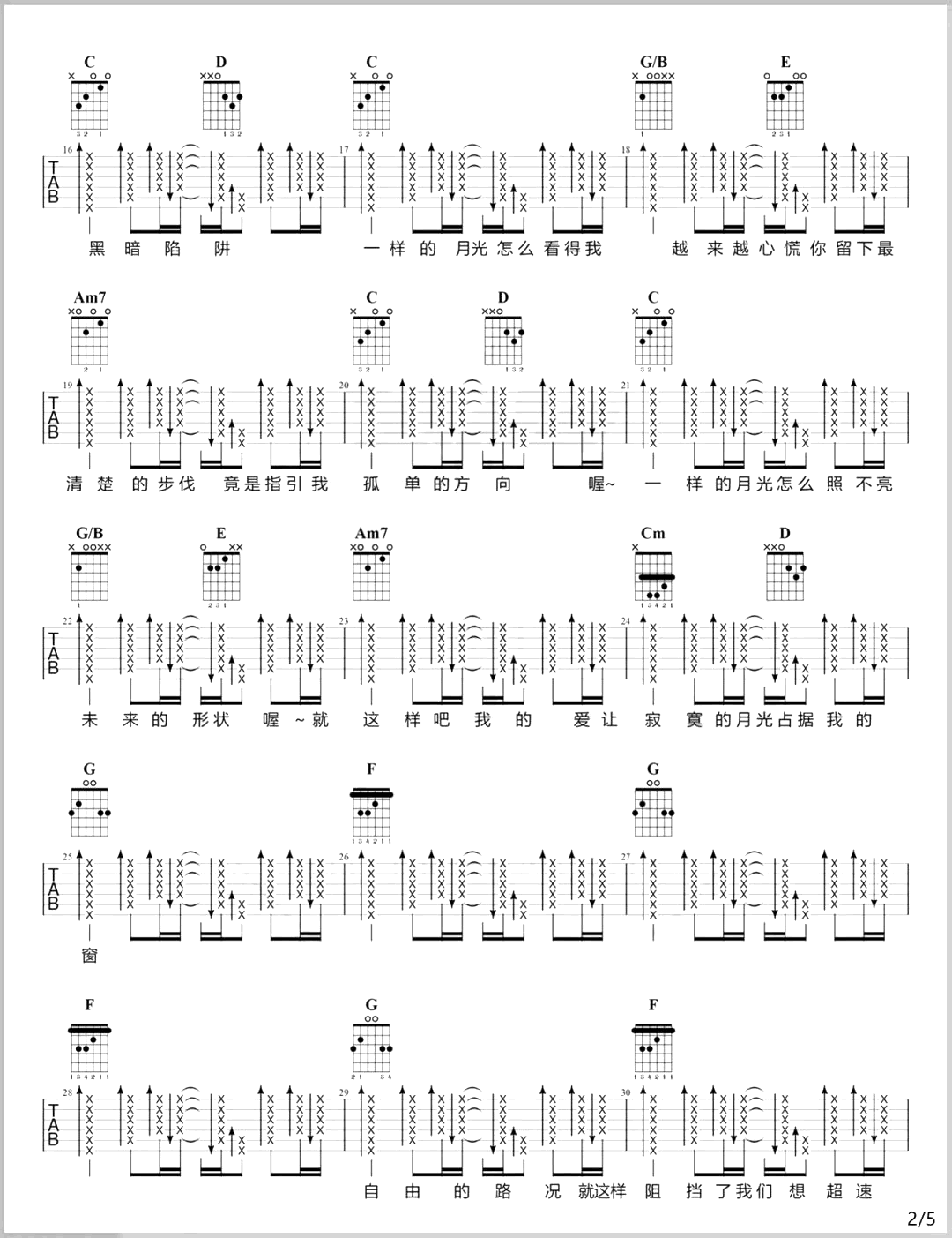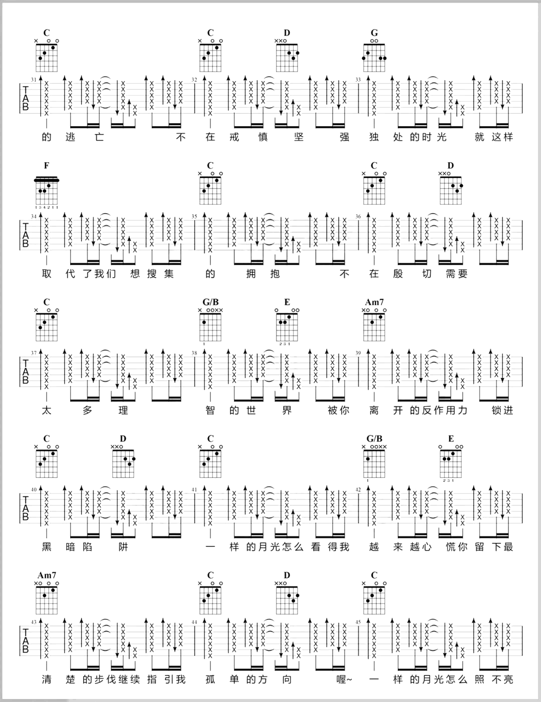 当前位置:琴谱网>吉他弹唱>一样的月光