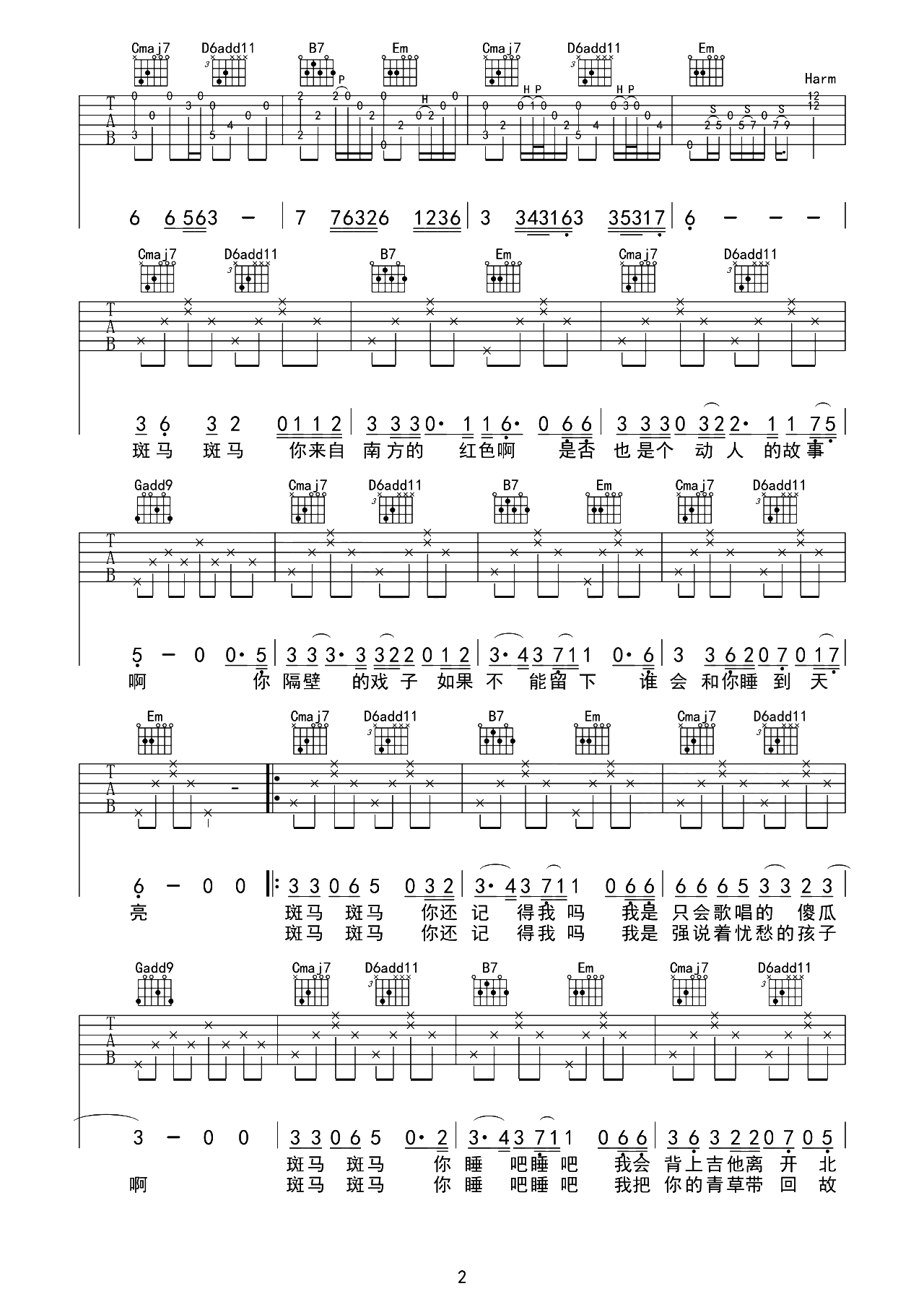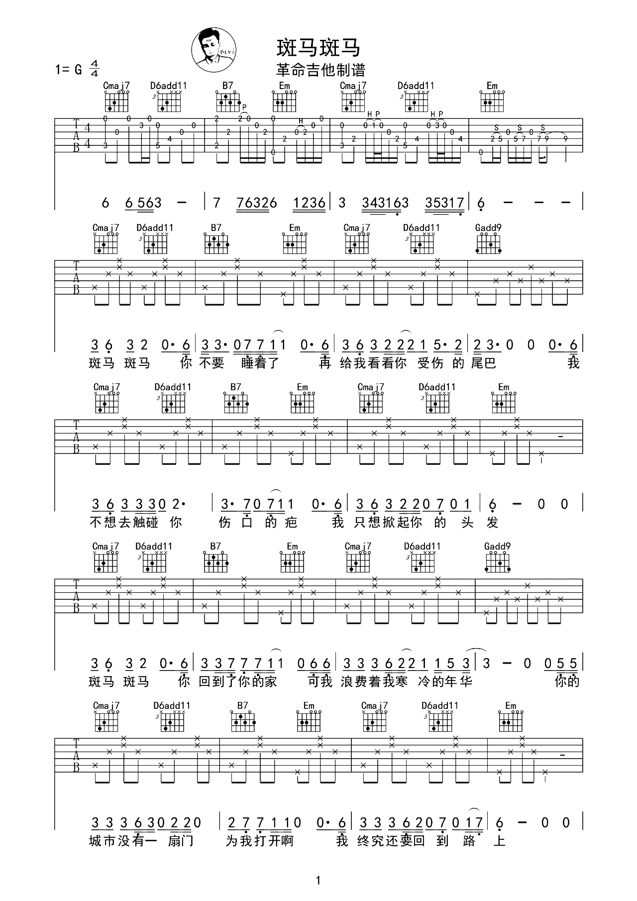 当前位置:琴谱网>吉他弹唱>斑马斑马