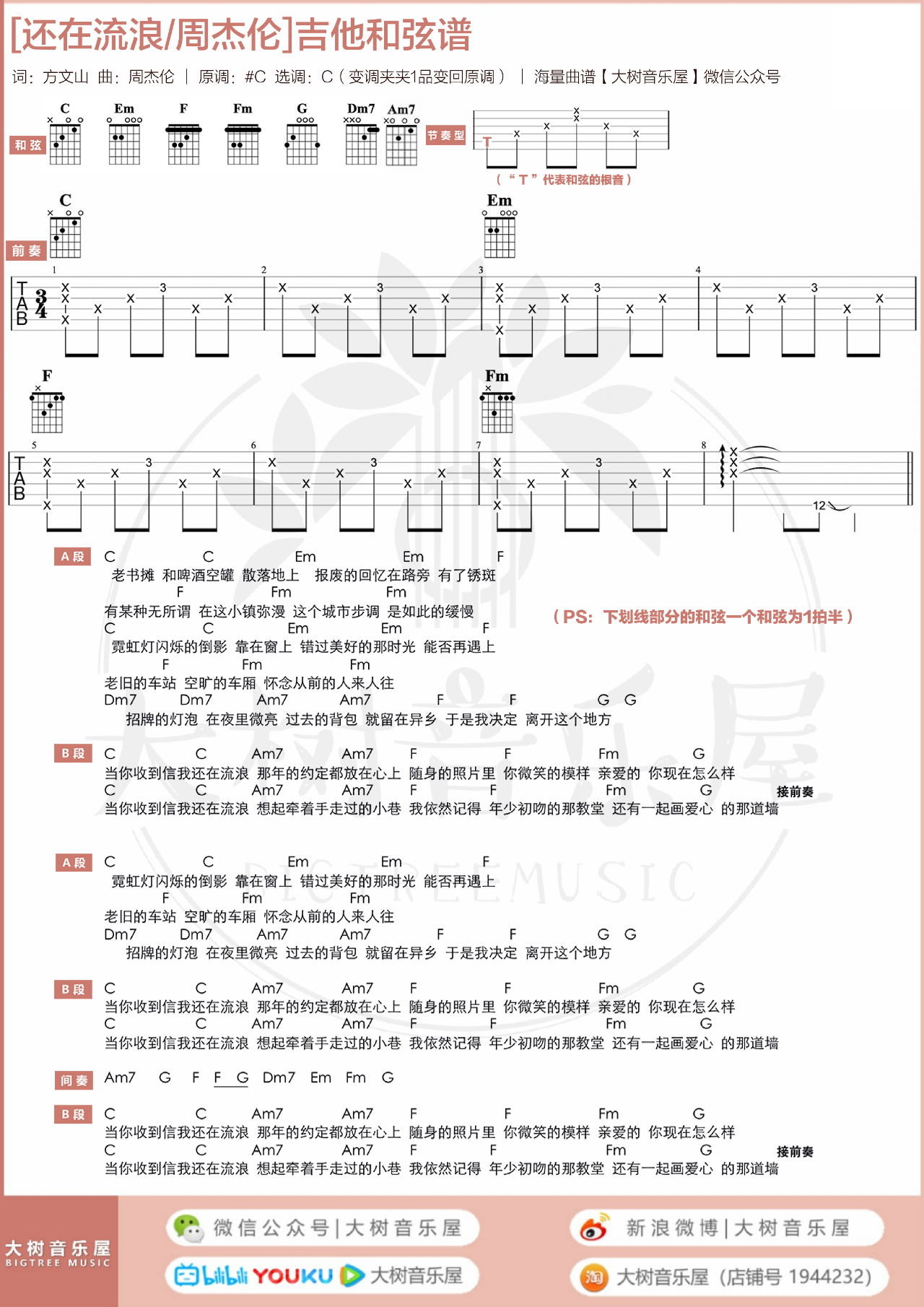 还在流浪吉他谱 - 周杰伦 - C调吉他弹唱谱