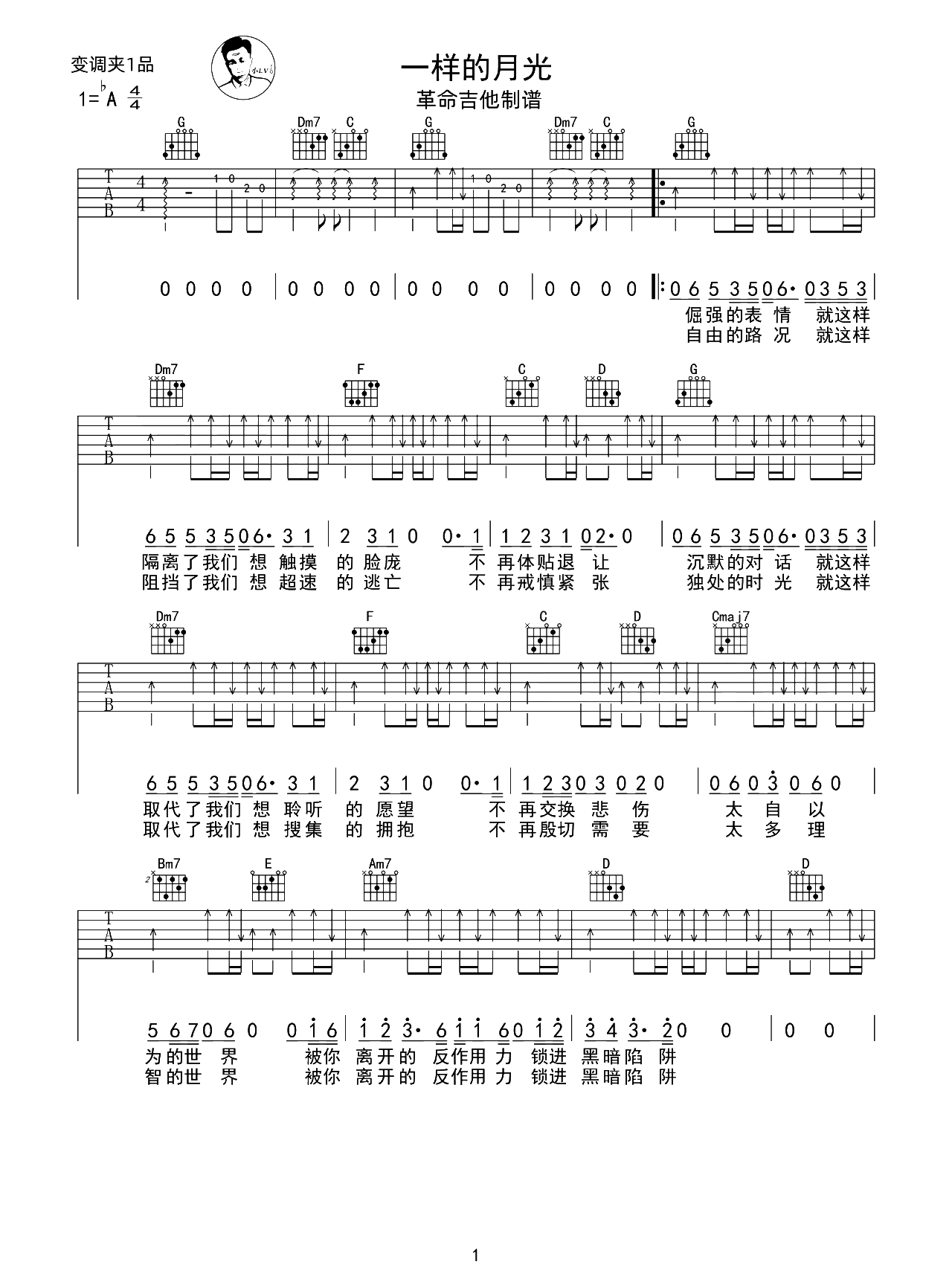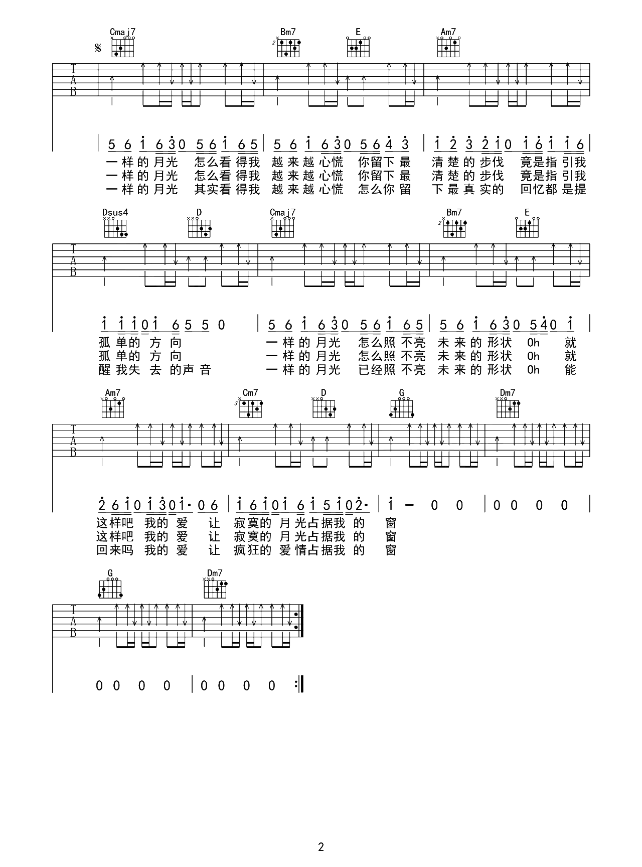 当前位置:琴谱网>吉他弹唱>一样的月光