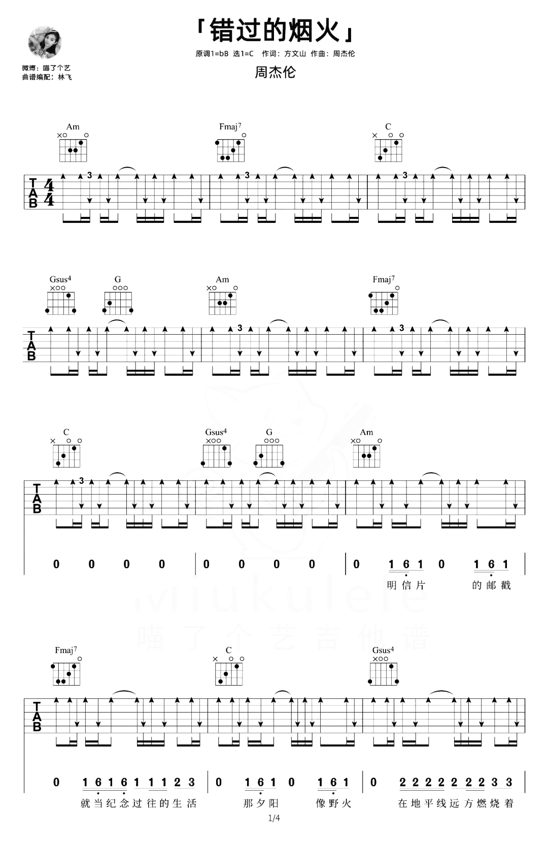 错过的烟火吉他谱 - 周杰伦 - C调吉他弹唱谱 - 原版