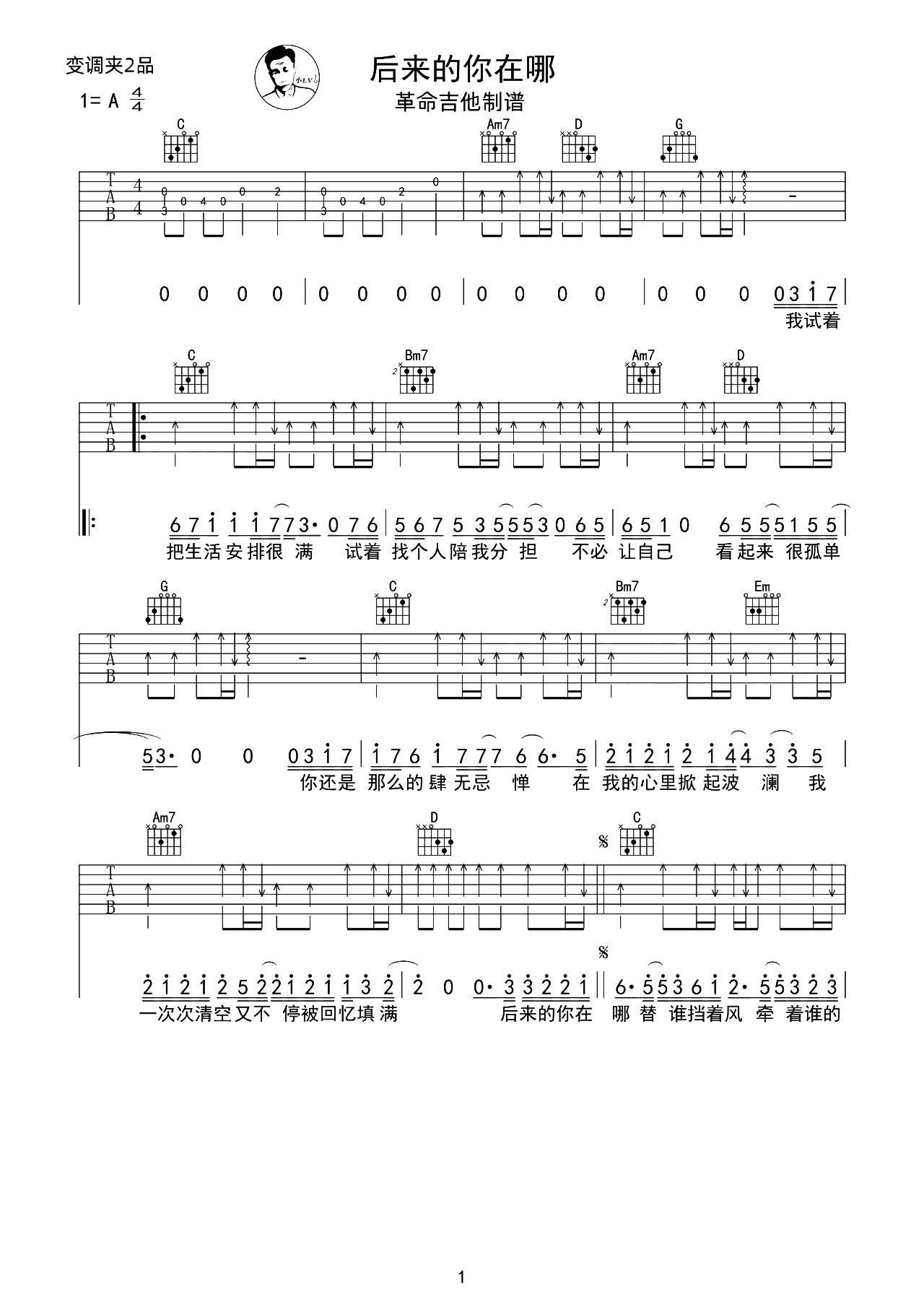 后来的你在哪吉他谱 - 树泽 - G调吉他弹唱谱 - 原版