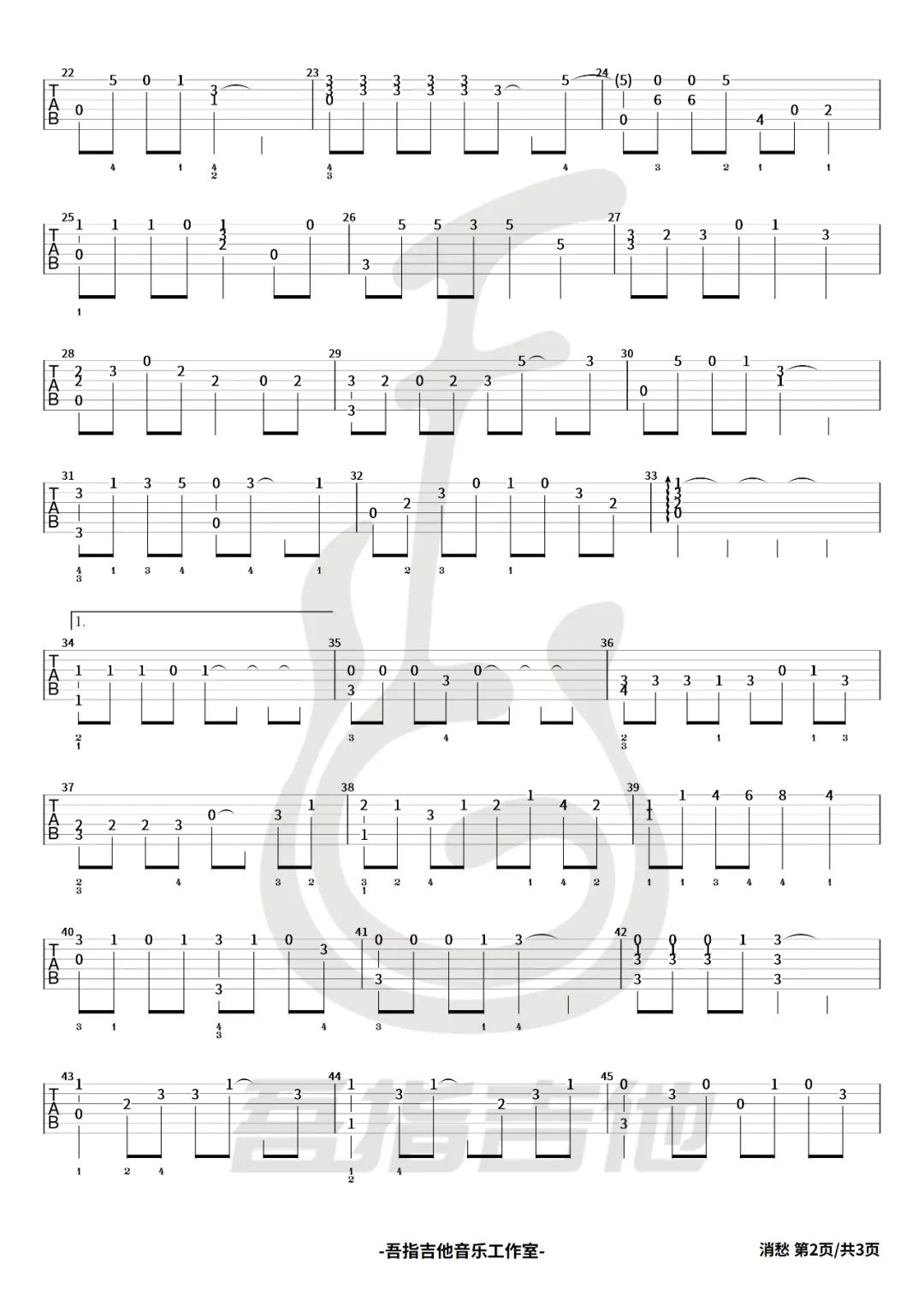 消愁吉他谱 - 毛不易 - 吉他独奏谱