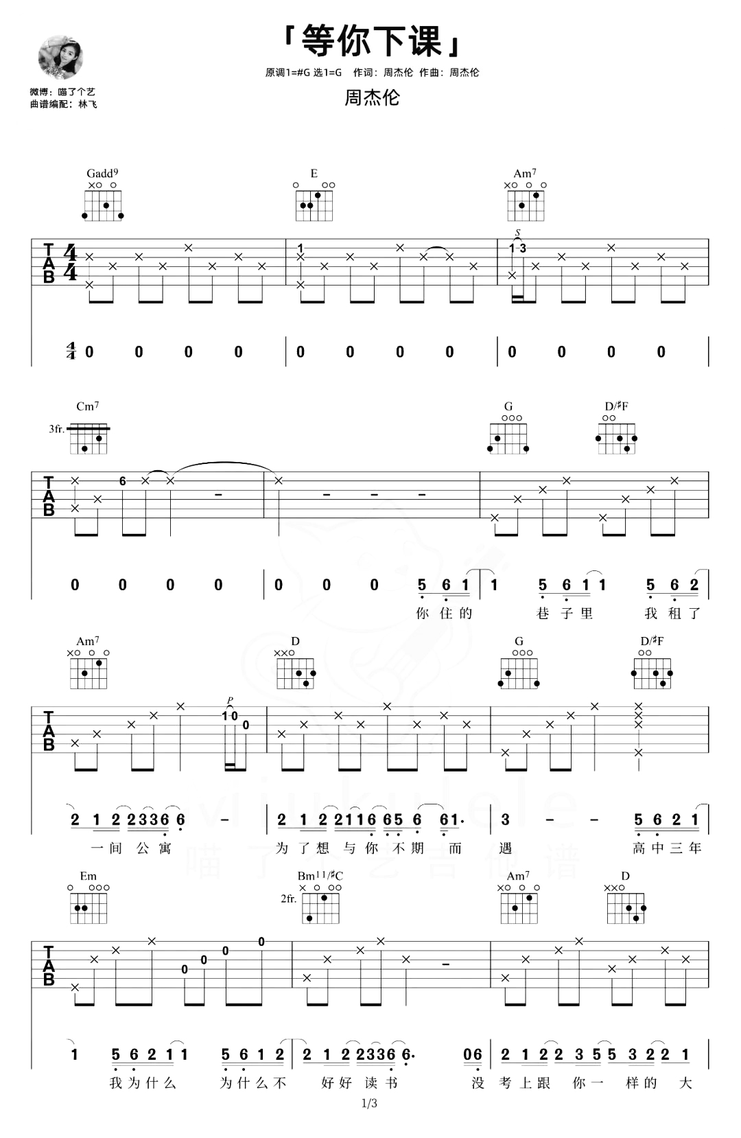 等你下课吉他谱 - 周杰伦 - G调吉他弹唱谱 - 原版