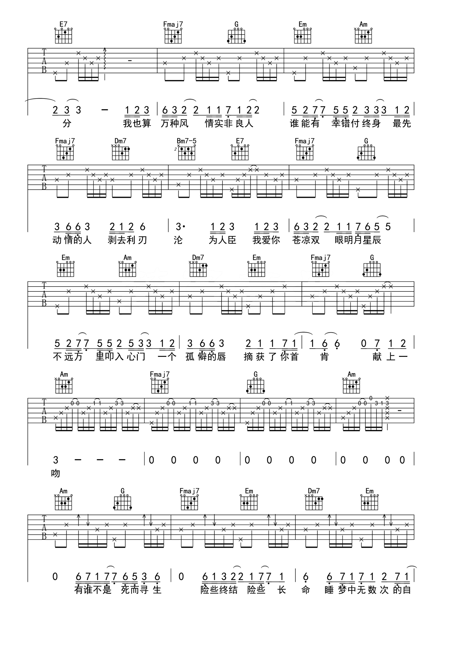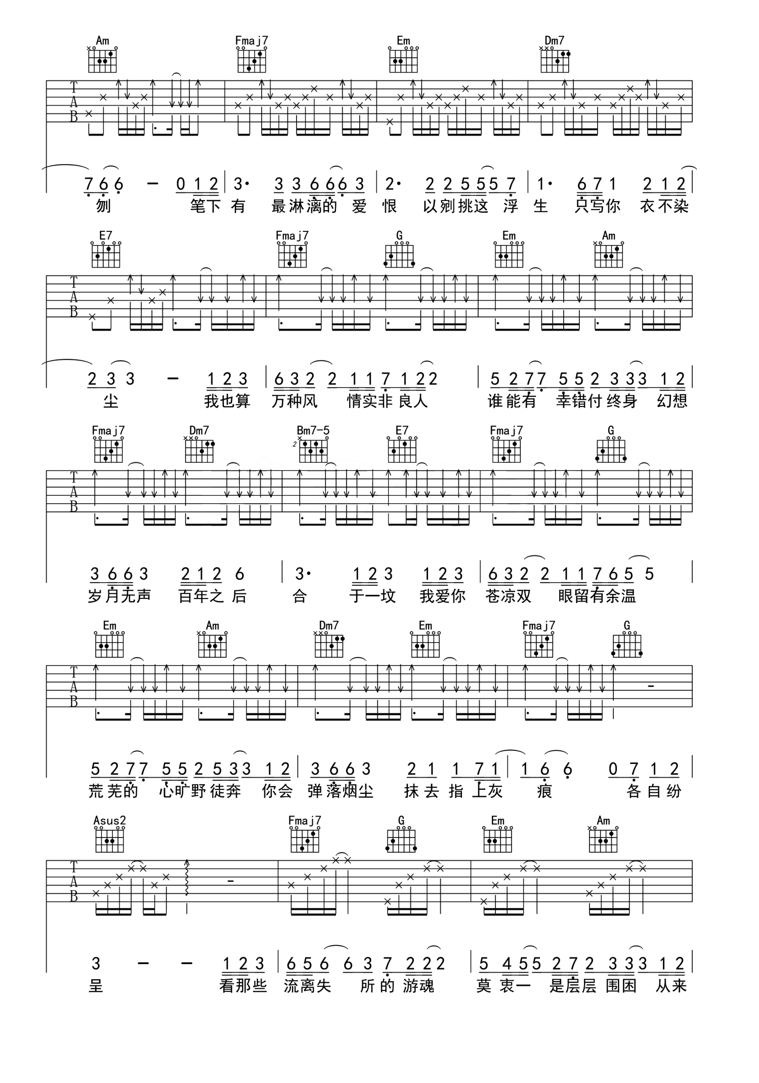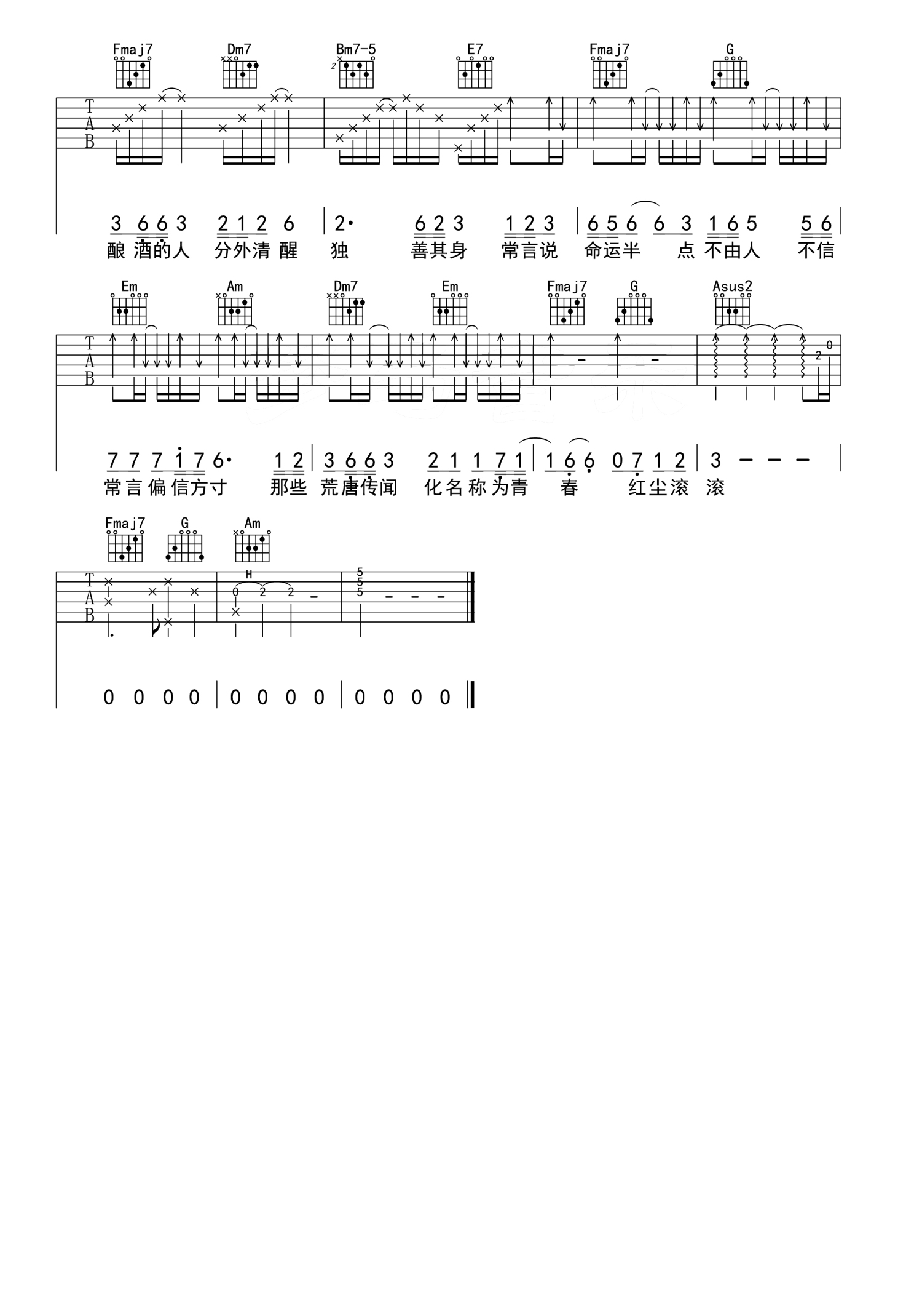 吉他弹唱C调来源:夏祯阳1770 浏览2019-09-01 19:03发布图谱共4页