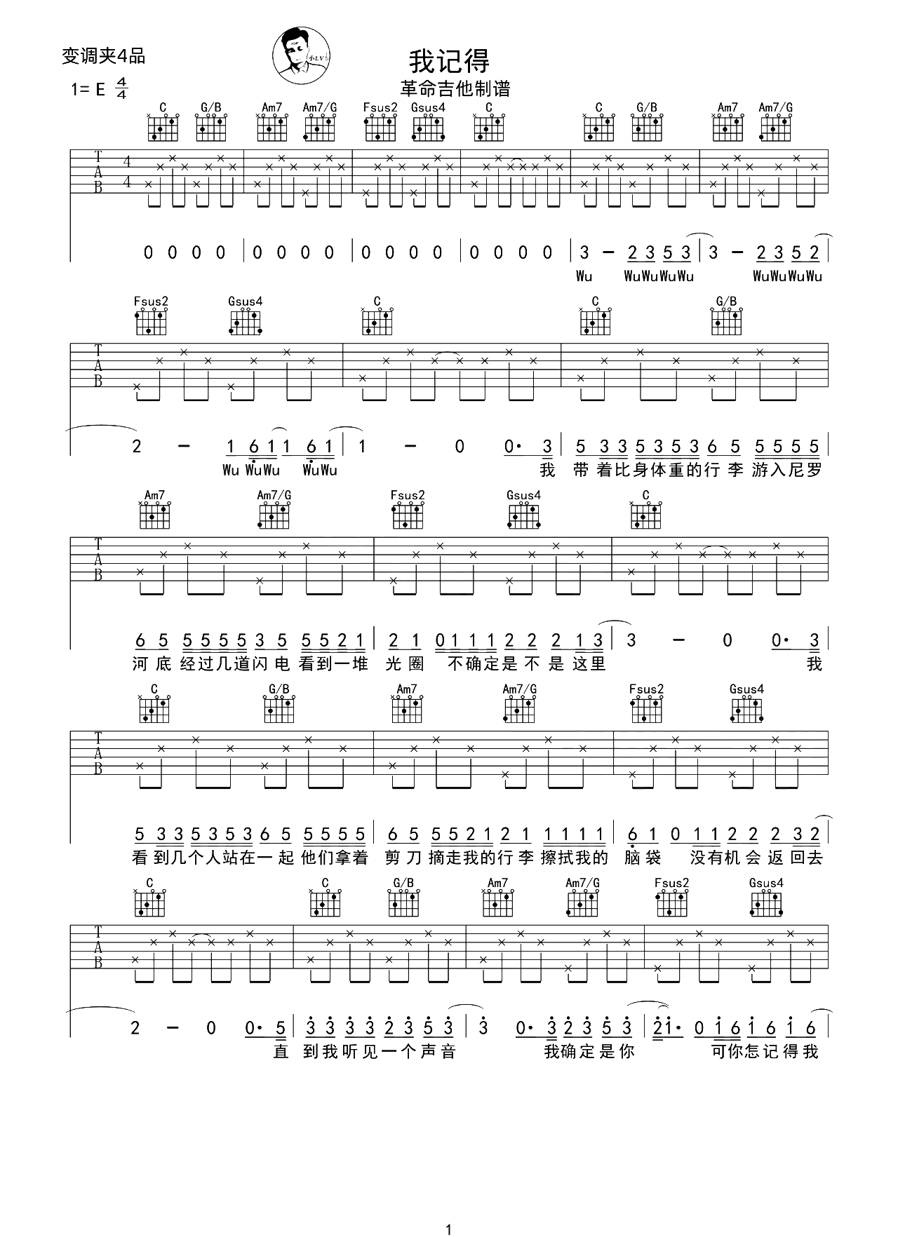 曲谱介绍: 我记得吉他谱,赵雷演唱的新专辑《署前街少年》中的歌曲,这也是听众普遍好评的一首歌。 《我记得》吉他弹唱谱,选用C调指法,原调E调,CAPO夹4品弹唱原调,节奏4/4拍,随谱附演示和教学视频,难度3级较简单。另外本页还提供了本谱的PDF版本下载。