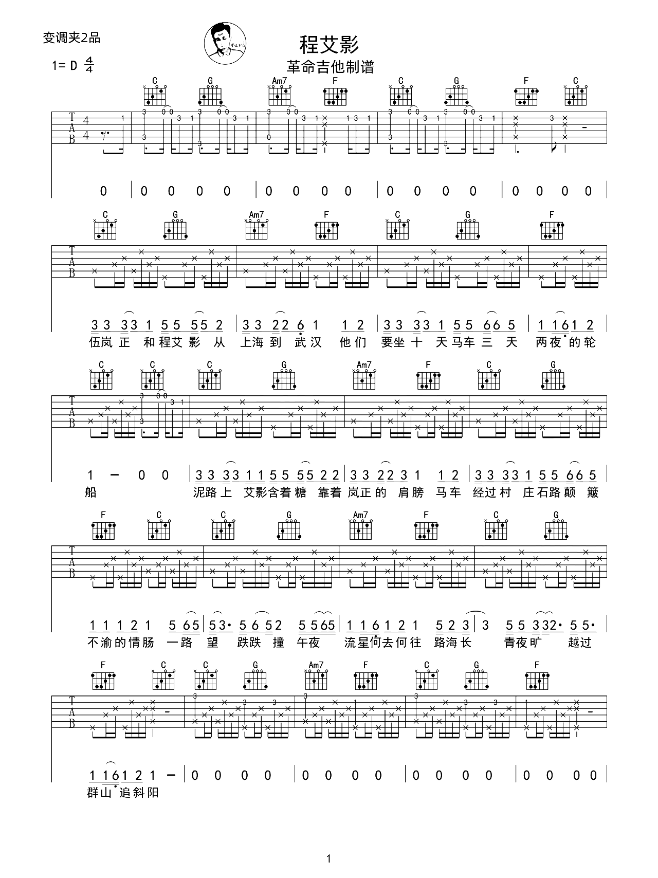 曲谱介绍: 程艾影吉他谱,赵雷演唱,歌曲包含了对女孩的爱情,更多的在歌曲中体会到了词的创新,深刻的描绘着故事 《程艾影》吉他弹唱谱,选用C调指法,原调D调,CAPO夹2品弹唱原调,节奏4/4拍,随谱附本曲的演示和教学视频,难度4级较简单。