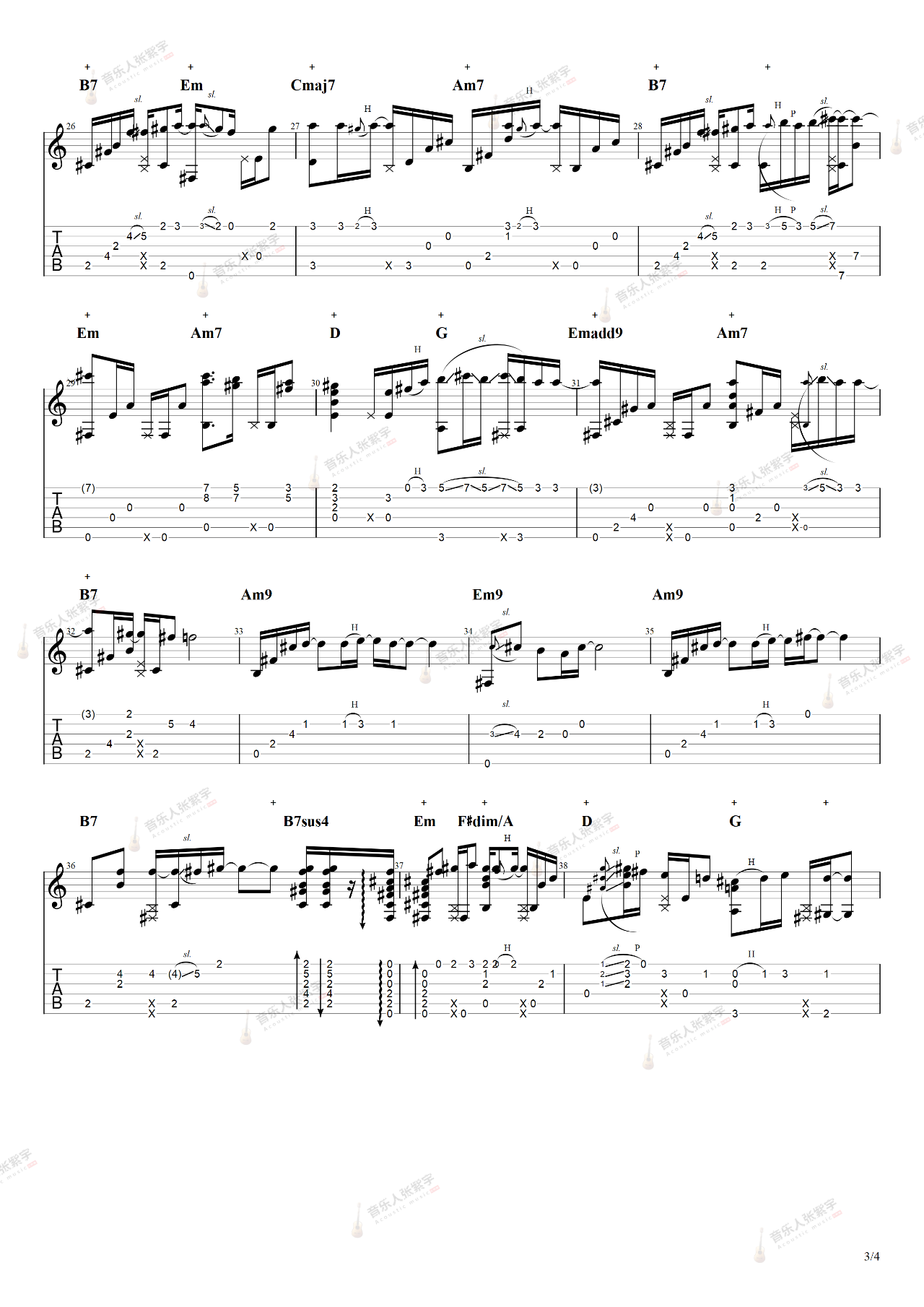 曲谱介绍: 《Burning》指弹教学视频 Burning指弹吉他谱,根据Maria Arredondo演唱的歌曲版本所改编,这也许是许多人陪伴过无数岁月的英文歌曲之一,当我们再度回首,浓郁画面再次浮现,甚至还会带着属于自己的光阴记忆。 指弹谱共有4张高清六线谱,弹奏速度控制在65拍每分钟,CAPO推荐2品,节奏4/4拍,随谱附《Burning》演示和教学视频,感兴趣的朋友可参考。 指弹谱详情