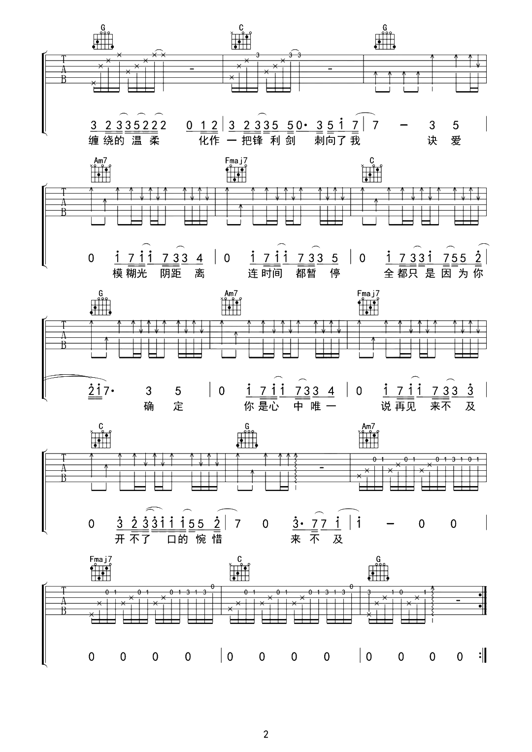 当前位置:琴谱网>吉他弹唱>诀爱