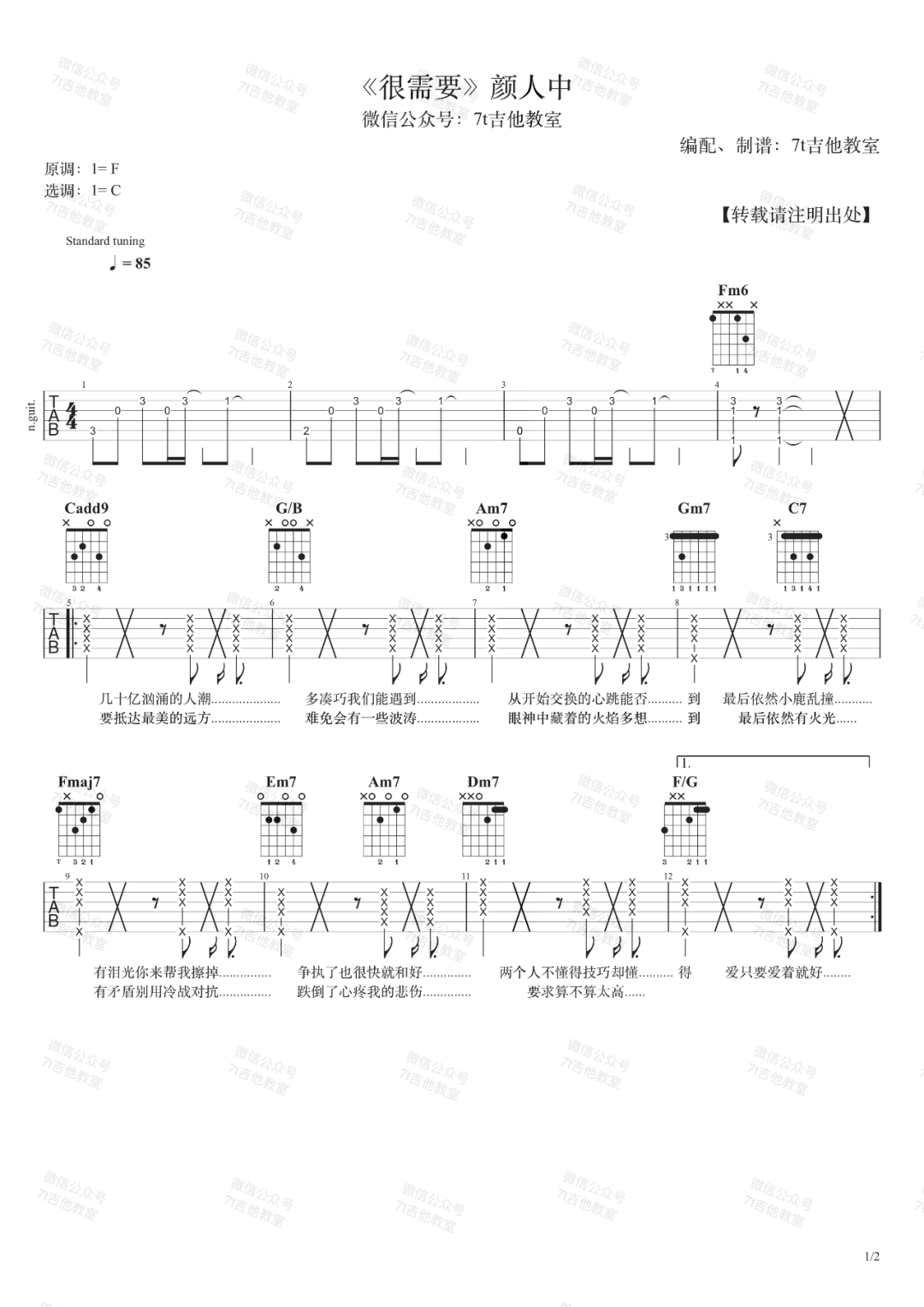 曲谱介绍: 很需要吉他谱,由颜人中演唱。颜人中将他干净利落又极具感染力的嗓音特质演绎到了极致,整首歌曲的感受好听入耳又带感。主歌部分的娓娓道来,副歌部分的能量爆发,自然又动人的演绎,让人忍不住深陷与循环。 《很需要》吉他弹唱谱,选用C调指法,CAPO夹5品可弹唱原调,速度控制85拍每分钟,节奏4/4拍,按超原版编配,难度5级适中,随谱附演示视频。