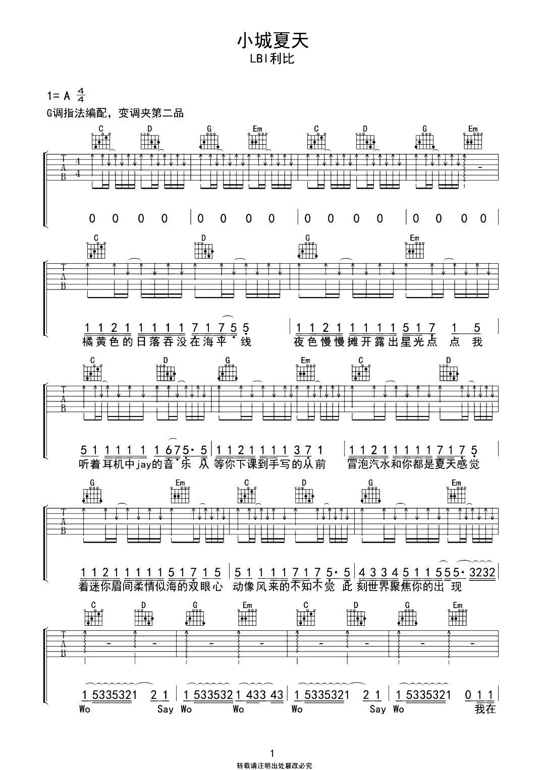 小城夏天吉他谱 - LBI利比 - G调吉他弹唱谱 - 原版