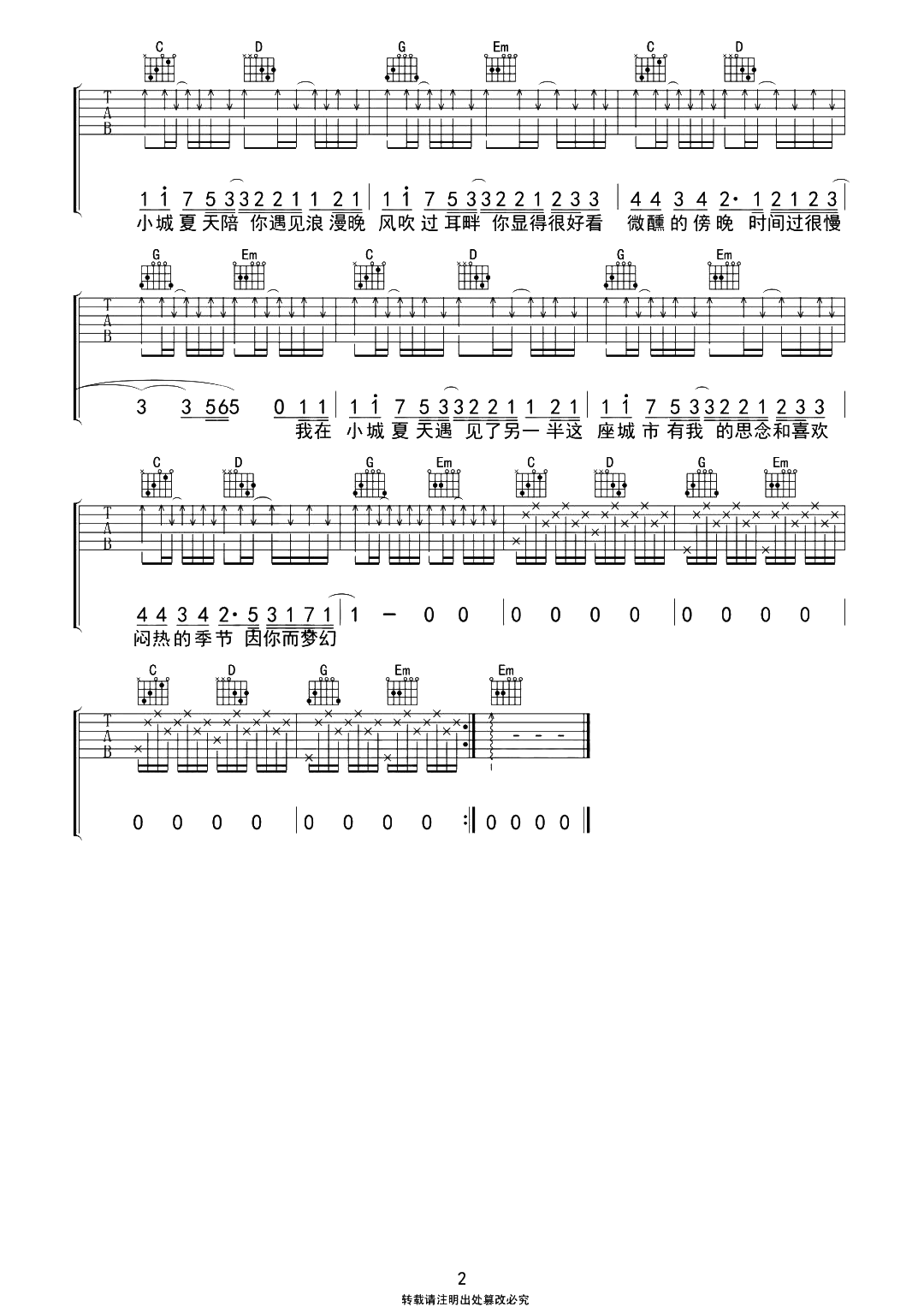 当前位置:琴谱网>吉他弹唱>小城夏天