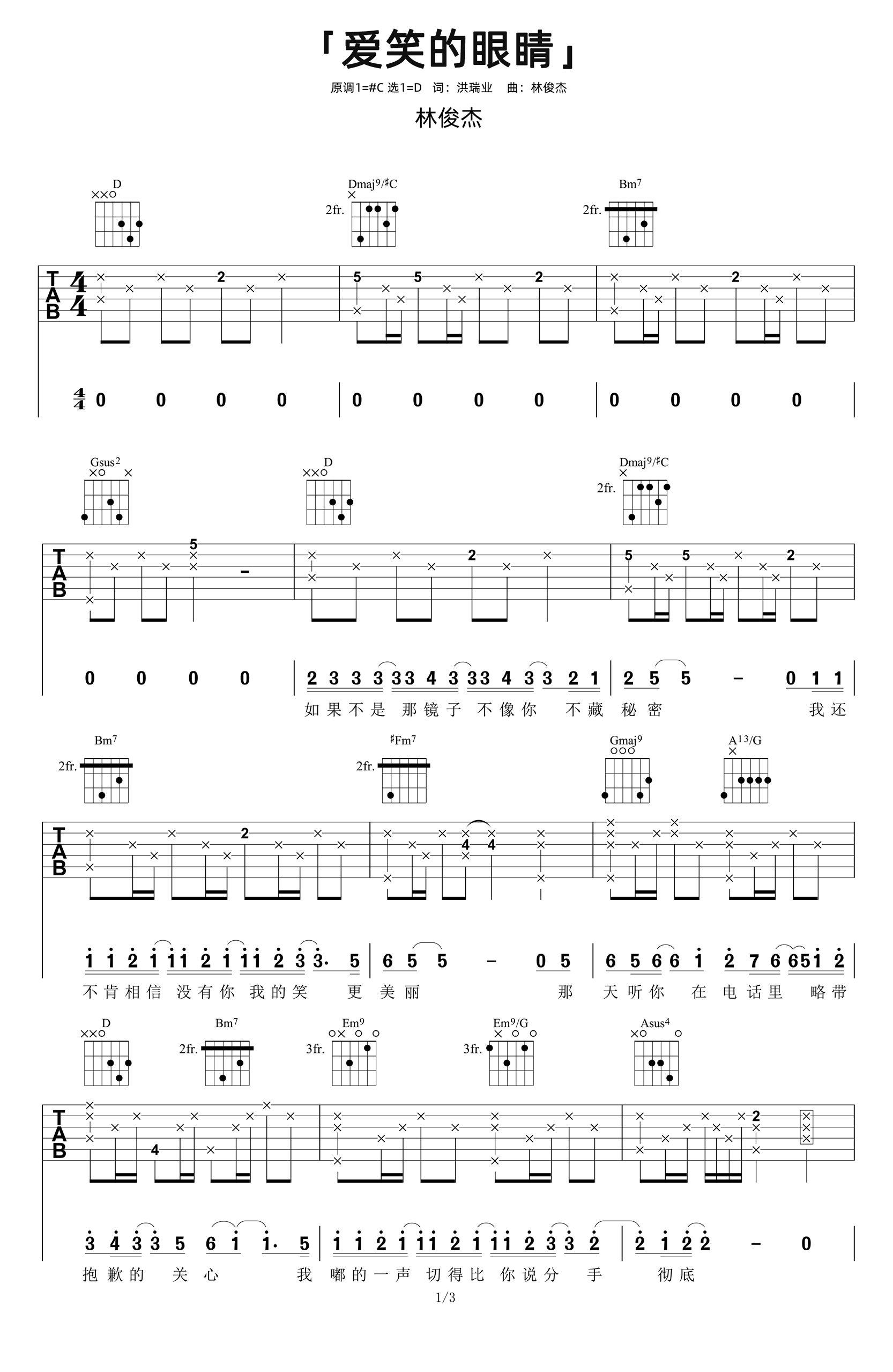 爱笑的眼睛吉他谱 - 林俊杰 - 吉他弹唱谱 - 原版