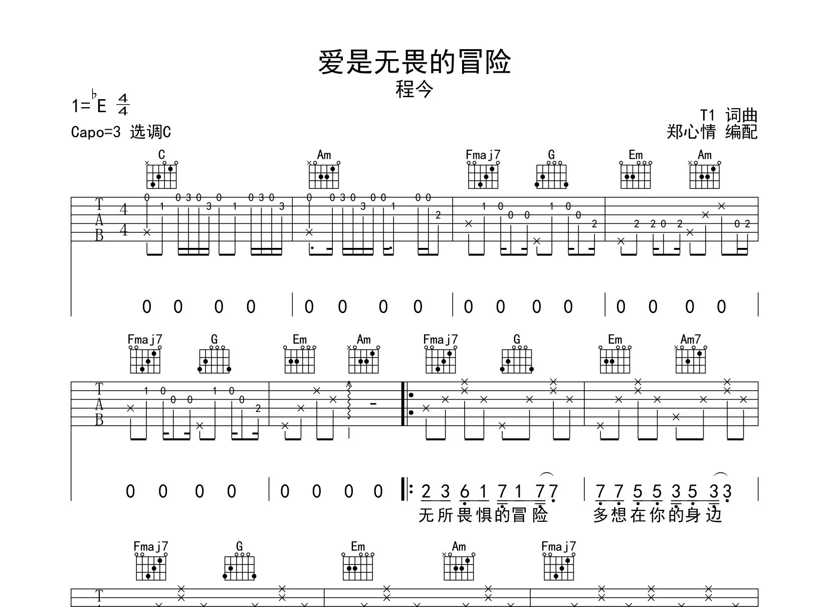 爱是无畏的冒险吉他谱 - 程今 - 吉他弹唱谱