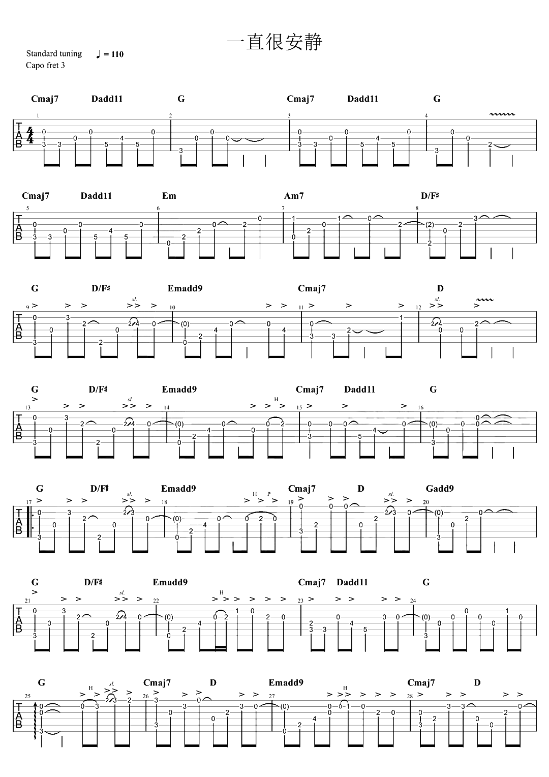 一直很安静吉他谱 - 阿桑 - 吉他独奏谱 - 原版