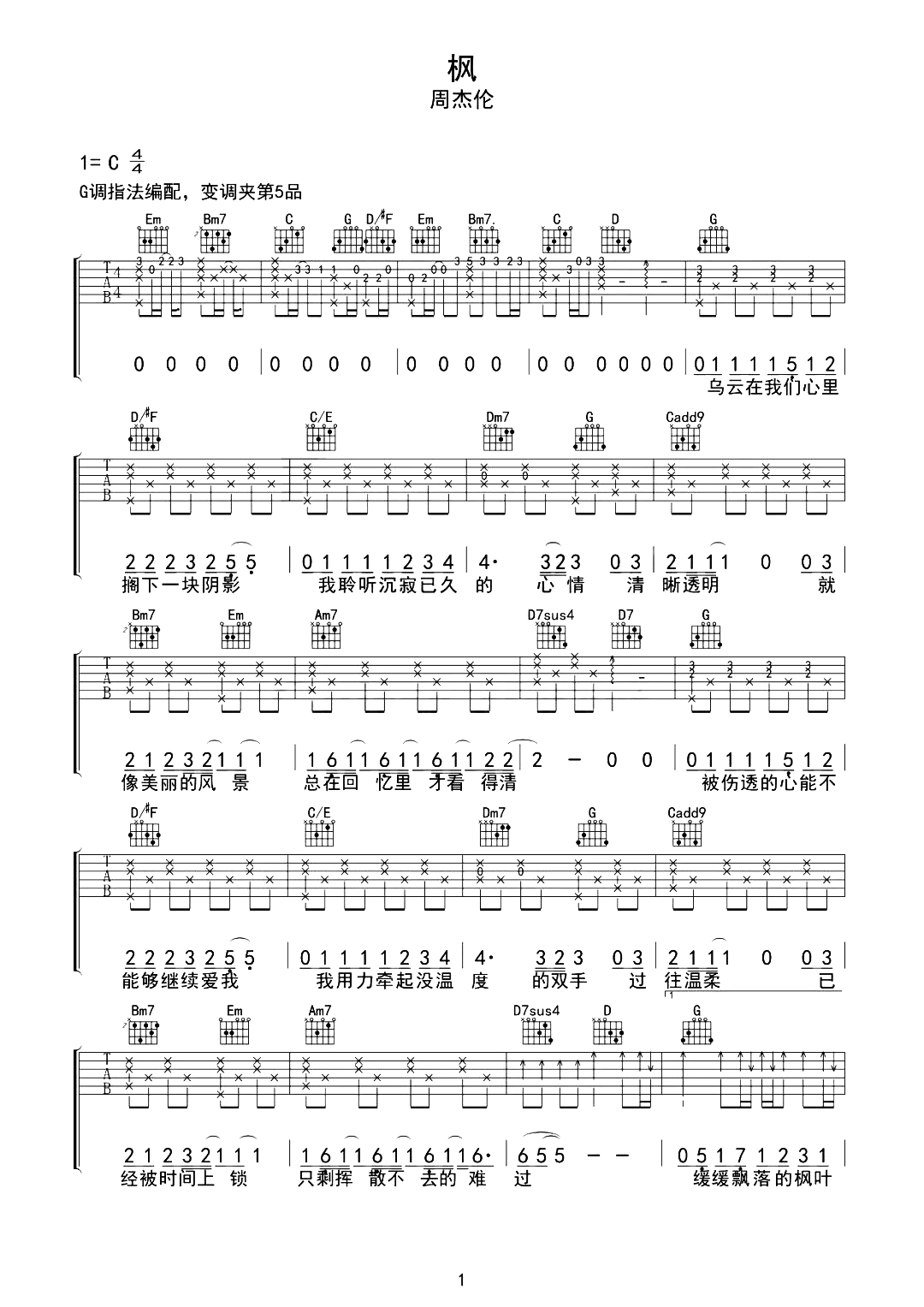 枫吉他谱 - 周杰伦 - G调吉他弹唱谱 - 原版