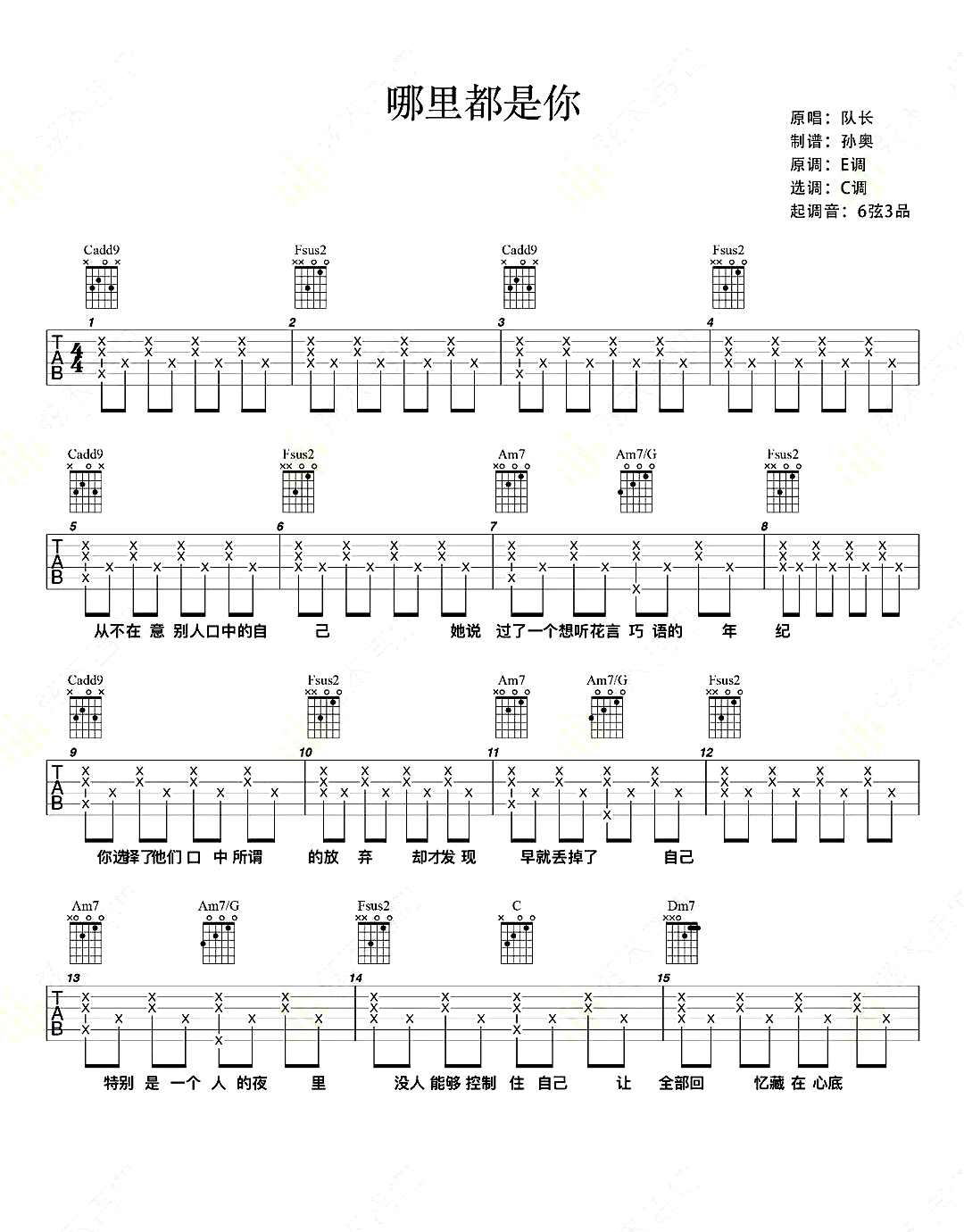 哪里都是你吉他谱 - 队长 - C调吉他弹唱谱 - 原版