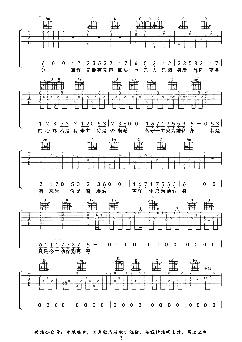 无期吉他谱 - 光头华夏 - G调吉他弹唱谱 - 原版