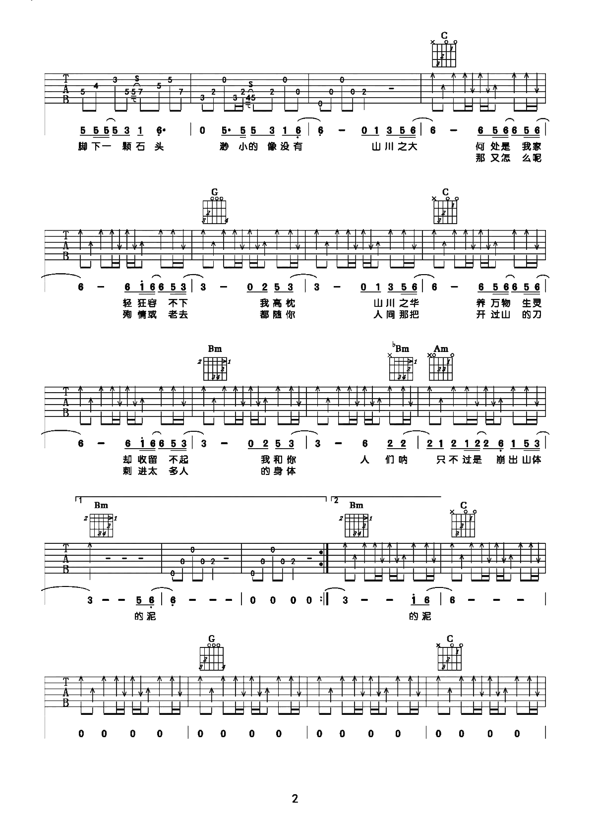 山川吉他谱 - 山川 - G调吉他弹唱谱 - 原版
