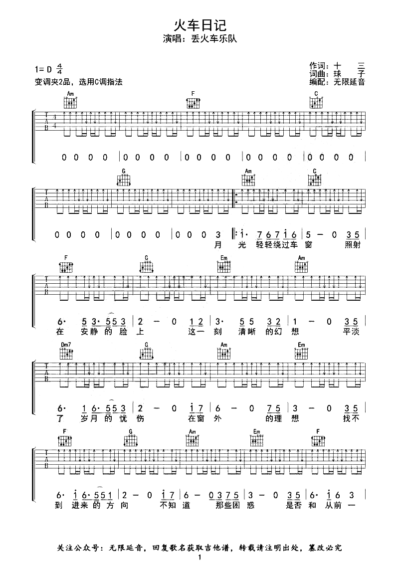 火车日记吉他谱 - 丢火车乐队 - C调吉他弹唱谱