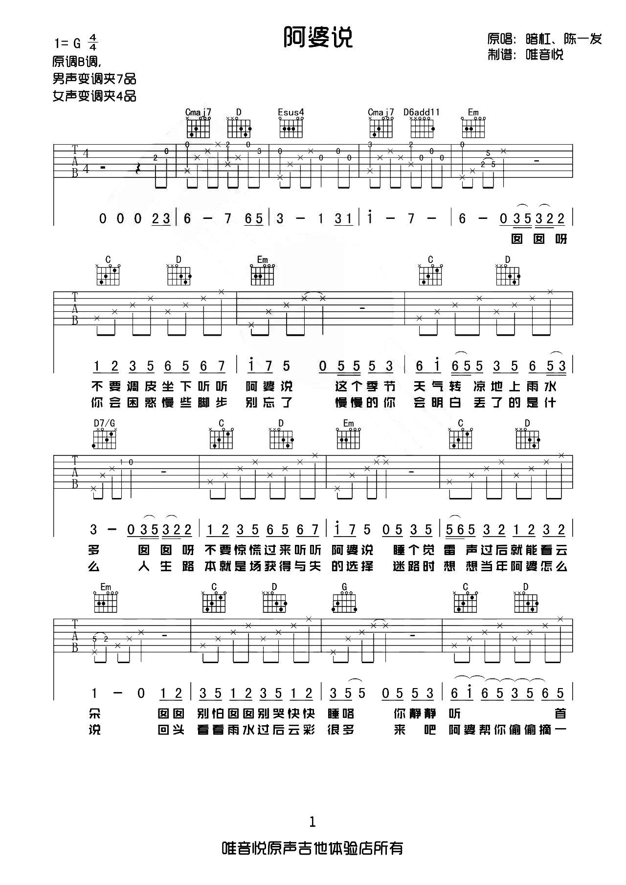 阿婆说吉他谱 - 阿婆说 - G调吉他弹唱谱 - 原版