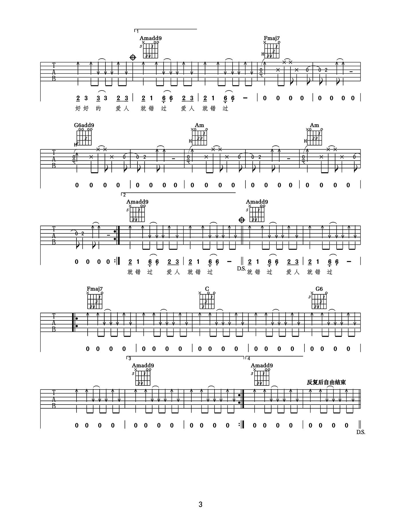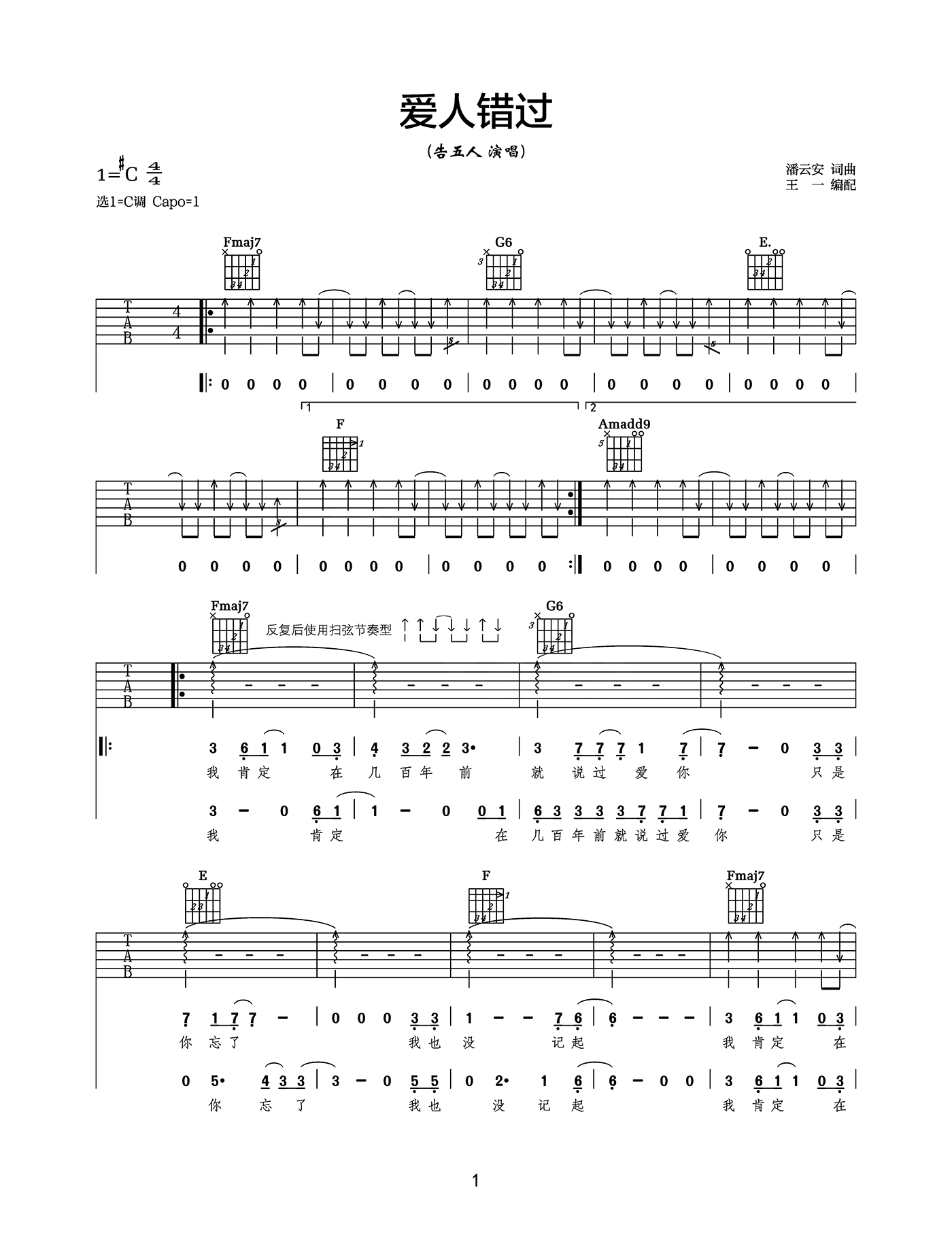 当前位置:琴谱网>吉他弹唱>爱人错过