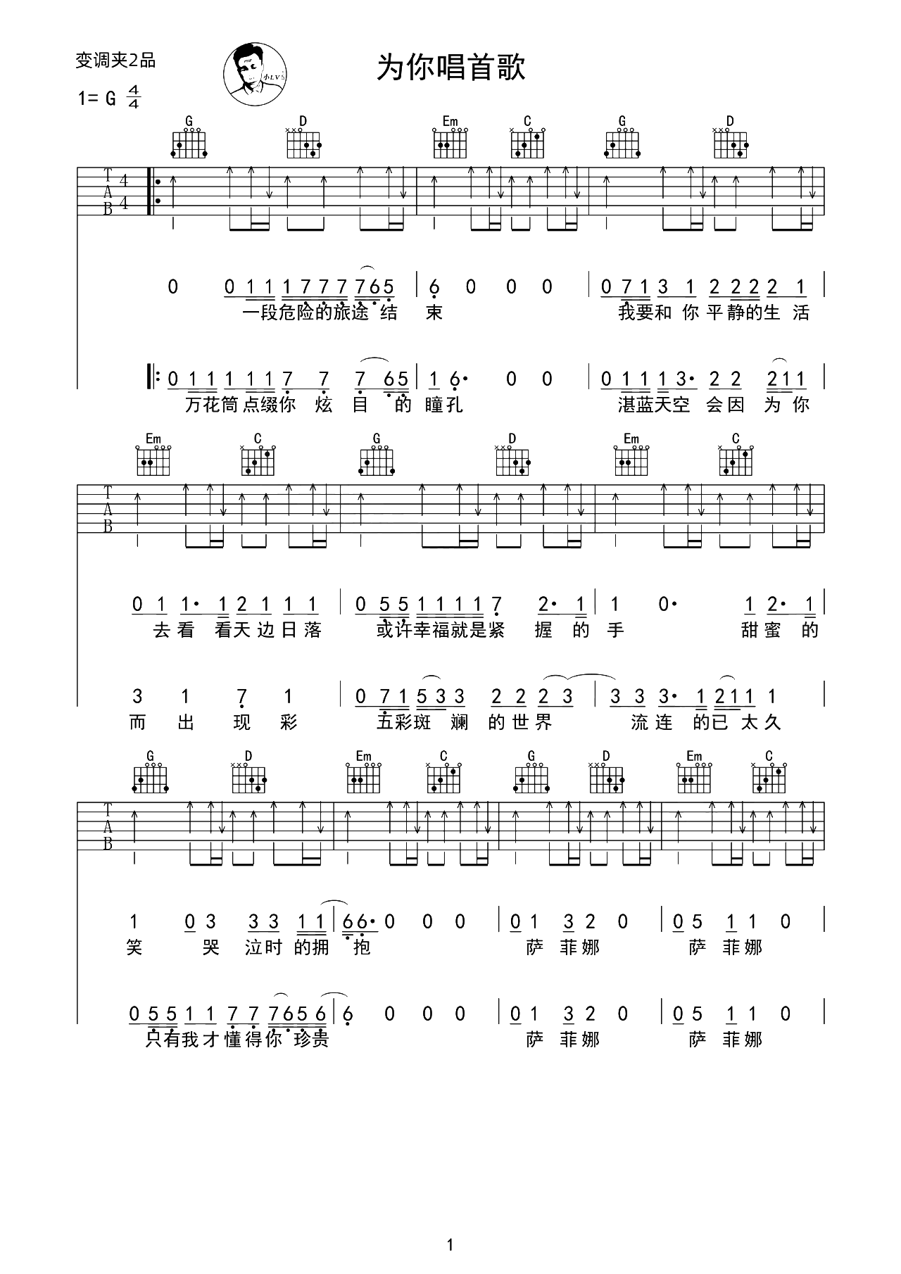 当前位置:琴谱网>吉他弹唱>为你唱首歌