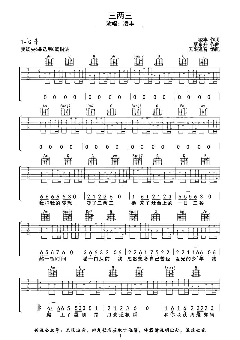 三两三吉他谱 - 凌丰 - C调吉他弹唱谱 - 原版