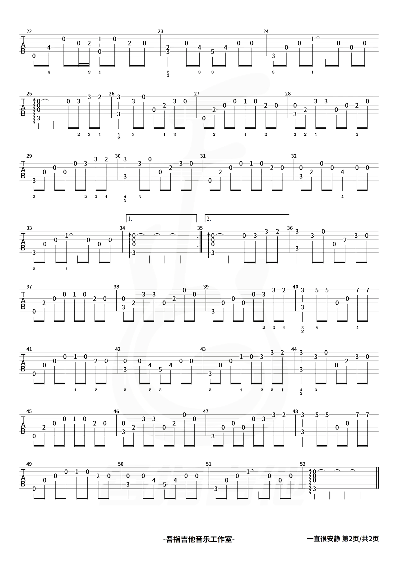 一直很安静吉他谱 - 阿桑 - 吉他独奏谱